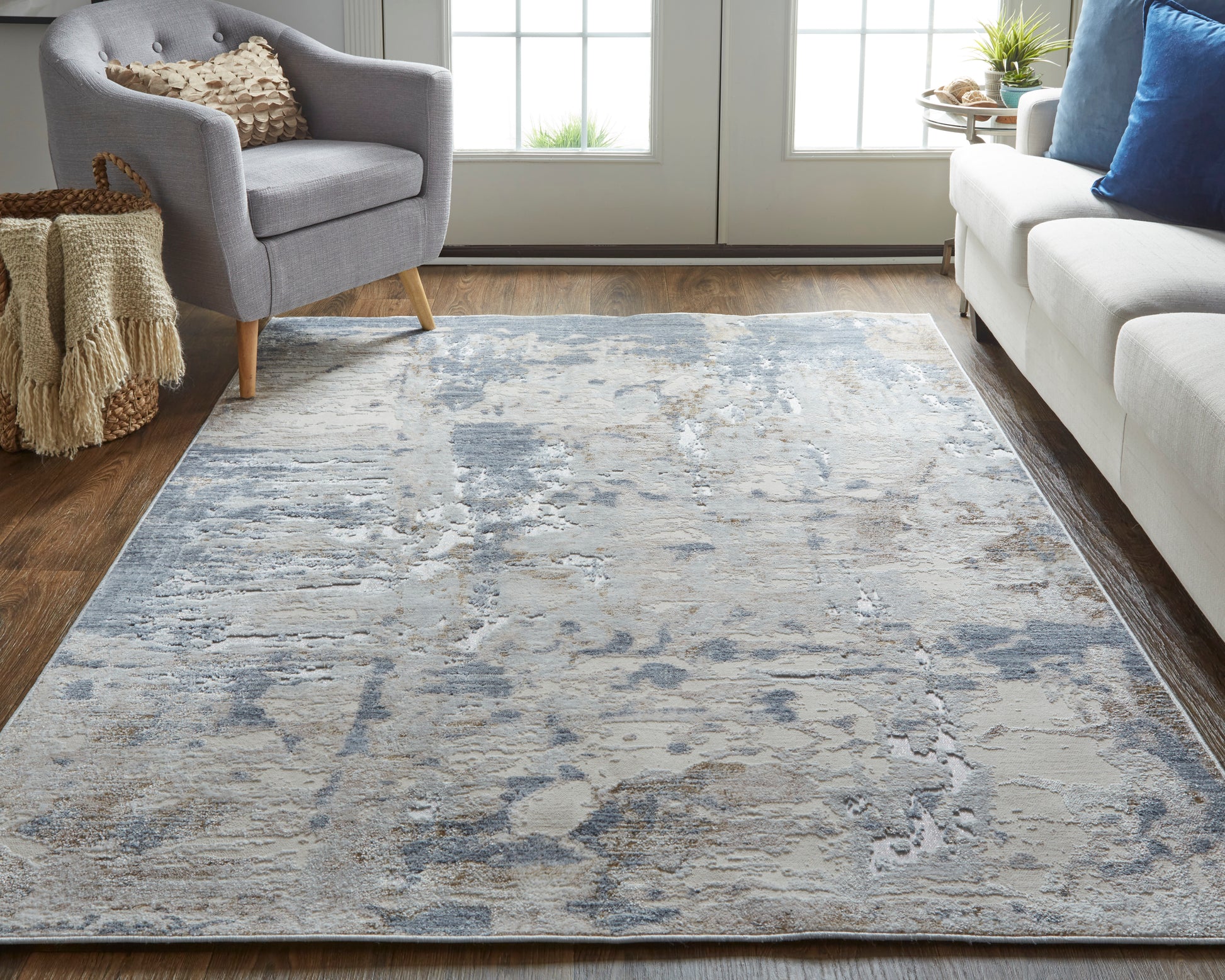 Laina Transitional/Industrial/Casual Ivory/Gray/Blue Accent Rug