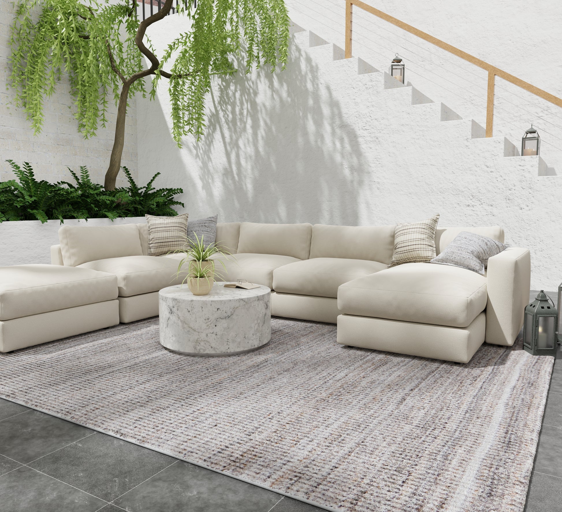 Gray Modern Rug: The subtle linear design in shades of gray and taupe complements contemporary home décor, fitting seamlessly in any space.