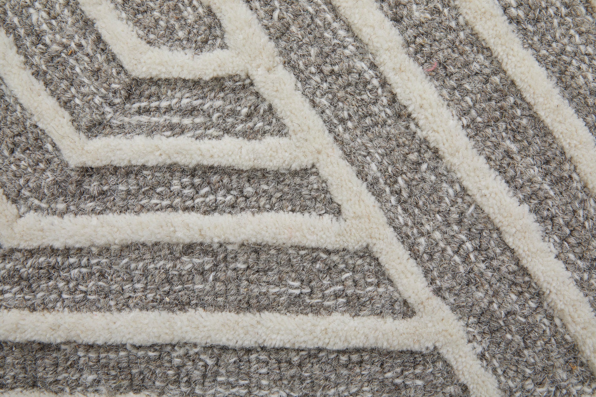 The Feizy Lytton collection is hand tufted in India of wool. These wool rugs are made using a traditional process which makes them long-lasting and durable. Designed with a contemporary geometric pattern in grey and white, the area rug is ideal for high-traffic areas of your home. Naturally stain and water resistant, this collection is perfect for a home with pets and kids.