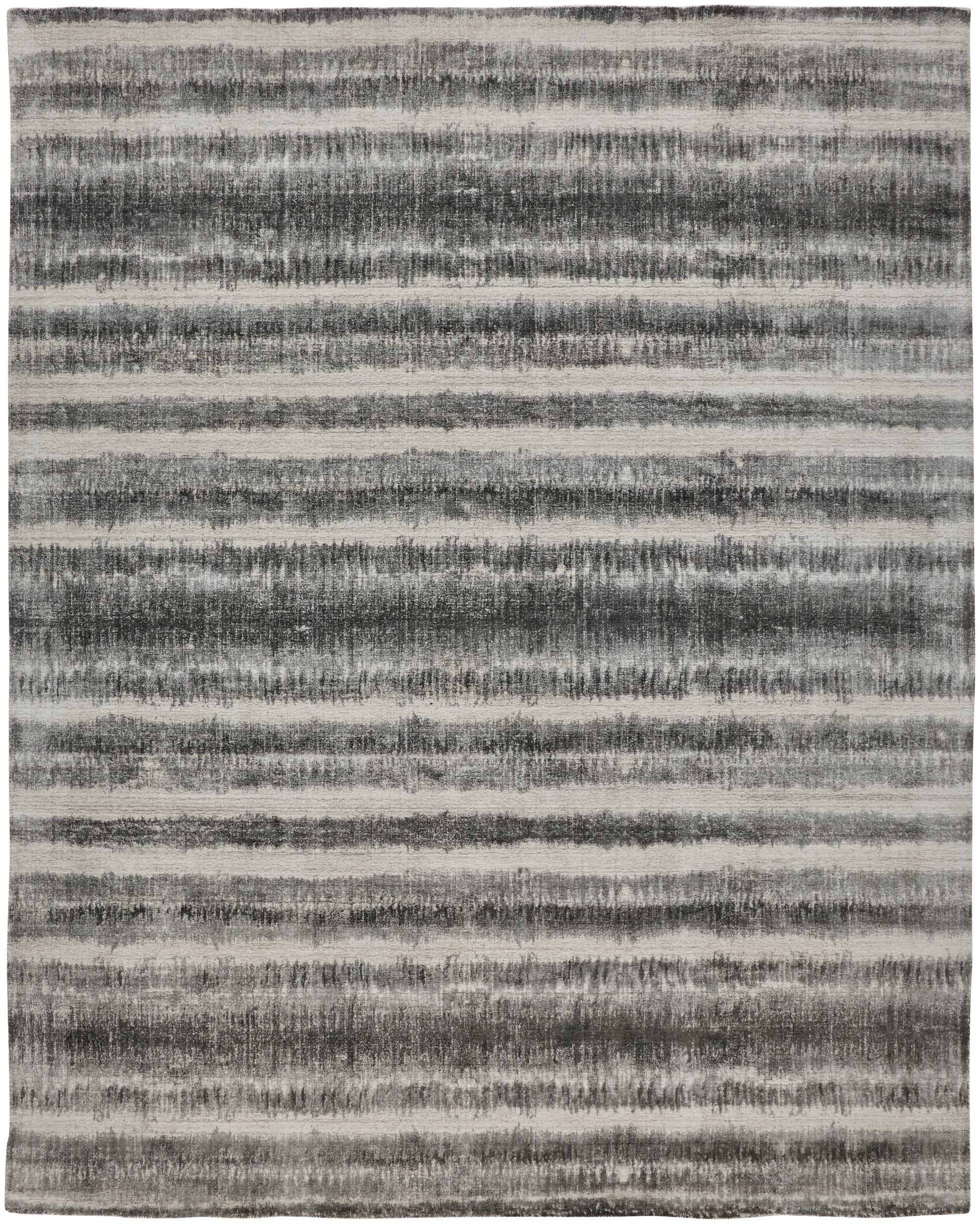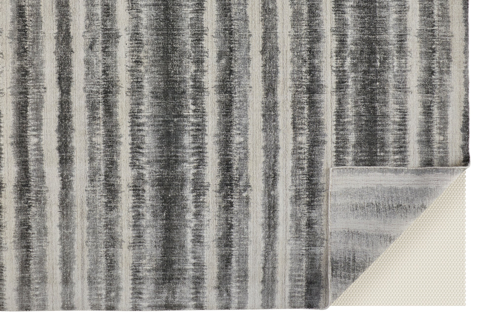 The Feizy Mackay collection is hand woven out of viscose and wool. Made in India, the Mackay has a low pile texture that brings a luxurious sheen and effortless style to any modern space. Instead of being sheared like tufted rugs, woven rug piles are maintained to create an embroidery like texture. Either produced on a hand operated loom, or woven by hand, this method is like hand tufting, but the yarn loops stay intact. The pattern is an artful spin on the classic stripe.
