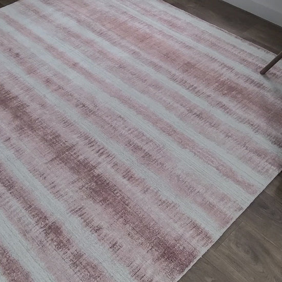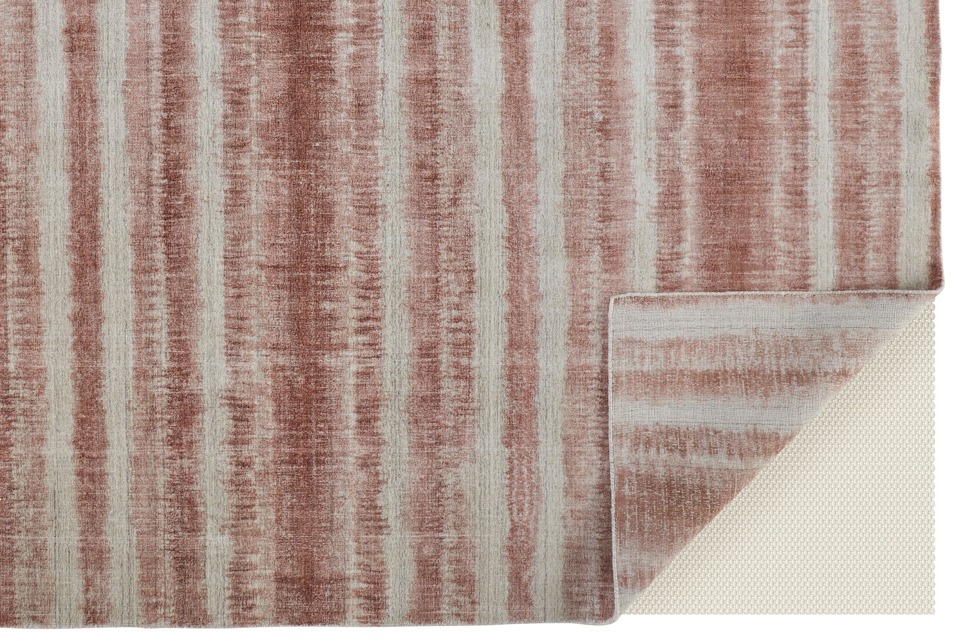 The Feizy Mackay collection is hand woven out of viscose and wool. Made in India, the Mackay has a low pile texture that brings a luxurious sheen and effortless style to any modern space. Instead of being sheared like tufted rugs, woven rug piles are maintained to create an embroidery like texture. Either produced on a hand operated loom, or woven by hand, this method is like hand tufting, but the yarn loops stay intact. The pattern is an artful spin on the classic stripe.