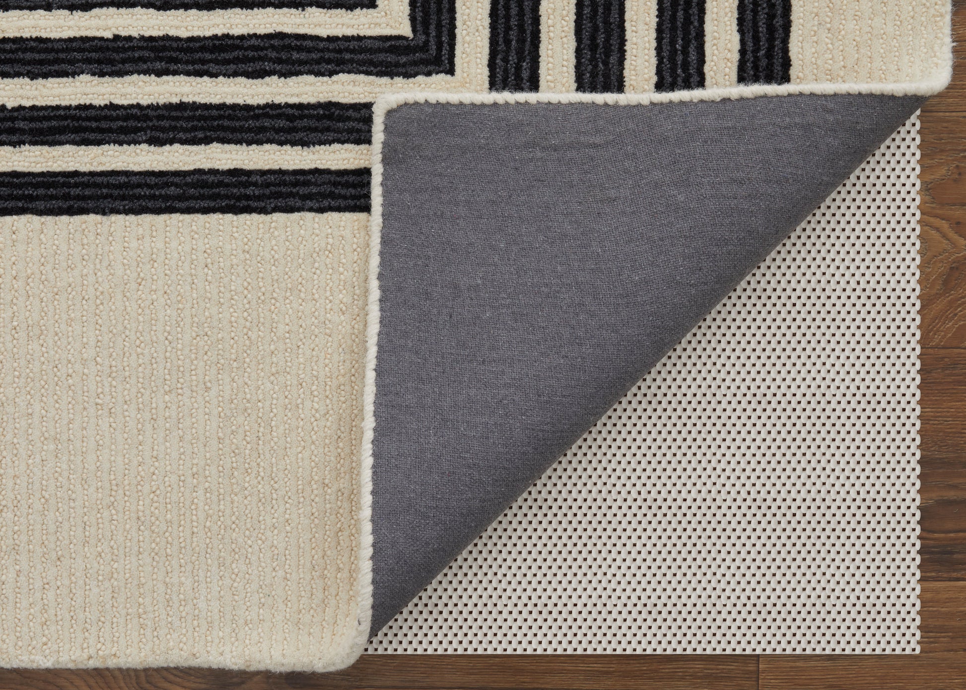 Hand-tufted in India of wool, the Feizy Maguire collection features striking geometric patterns and high-contrast colors of ivory and black. The graphic element woven into the area rug brings a bold and modern feel to any room. The wool allows for stain, water, and fade resistance. The fiber of the rug allows easy care, can handle high traffic, and is pet friendly. This conversation starting piece will look great in any space you might host in.