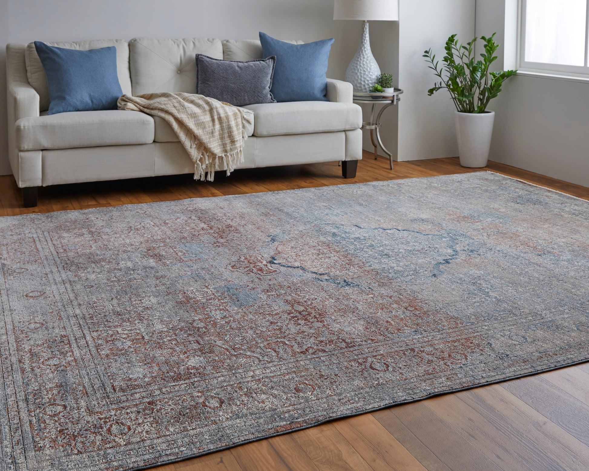 Marquette Transitional/Bohemian & Eclectic/Vintage Blue/Red/Gray Area Rug