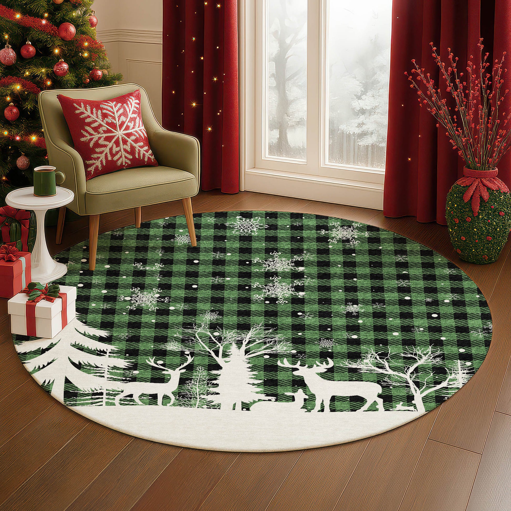 Holiday nostalgia meets playful spirit in the Merry & Bright collection, designed with a luxuriously soft polyester material that’s conveniently washable for everyday use. The dense microfiber weave paired with a slip-resistant backing keeps comfort and safety in check. Made in the USA with globally sourced components and local expertise, each piece reflects quality and care. A perfect match for busy, pet-loving homes that value style and ease.