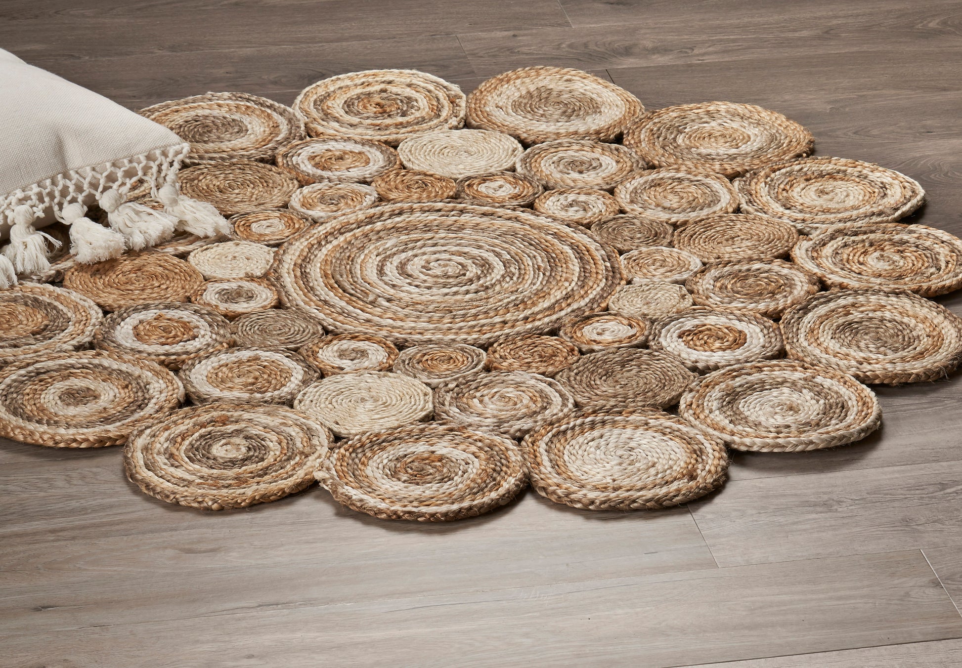Elevate your living room, dining room, or bedroom with this stunning indoor area rug. Crafted with care by skilled artisans in India using 100% jute, this rug boasts a natural brown color that exudes warmth and a bohemian vibe. The hand-braided design adds texture and depth, creating a look that is both stylish and timeless. Durable and sustainable, it is also made to withstand the test of time and make a statement in any space. Embrace the natural beauty and bring this must-have rug into your home today!
