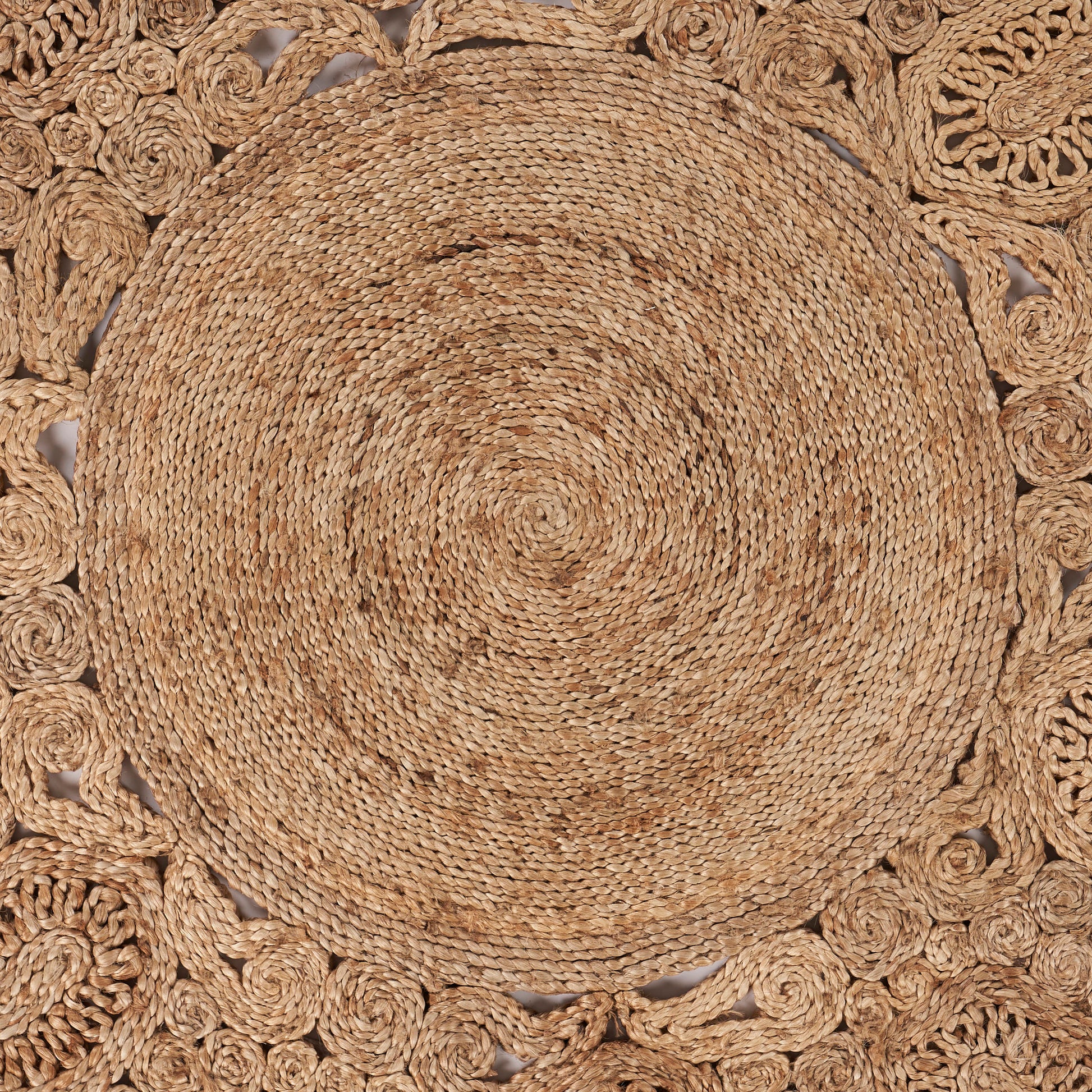Elevate your living room, dining room, or bedroom with this stunning indoor area rug. Crafted with care by skilled artisans in India using 100% jute, this rug boasts a natural brown color that exudes warmth and a bohemian vibe. The hand-braided design adds texture and depth, creating a look that is both stylish and timeless. Durable and sustainable, it is also made to withstand the test of time and make a statement in any space. Embrace the natural beauty and bring this must-have rug into your home today!