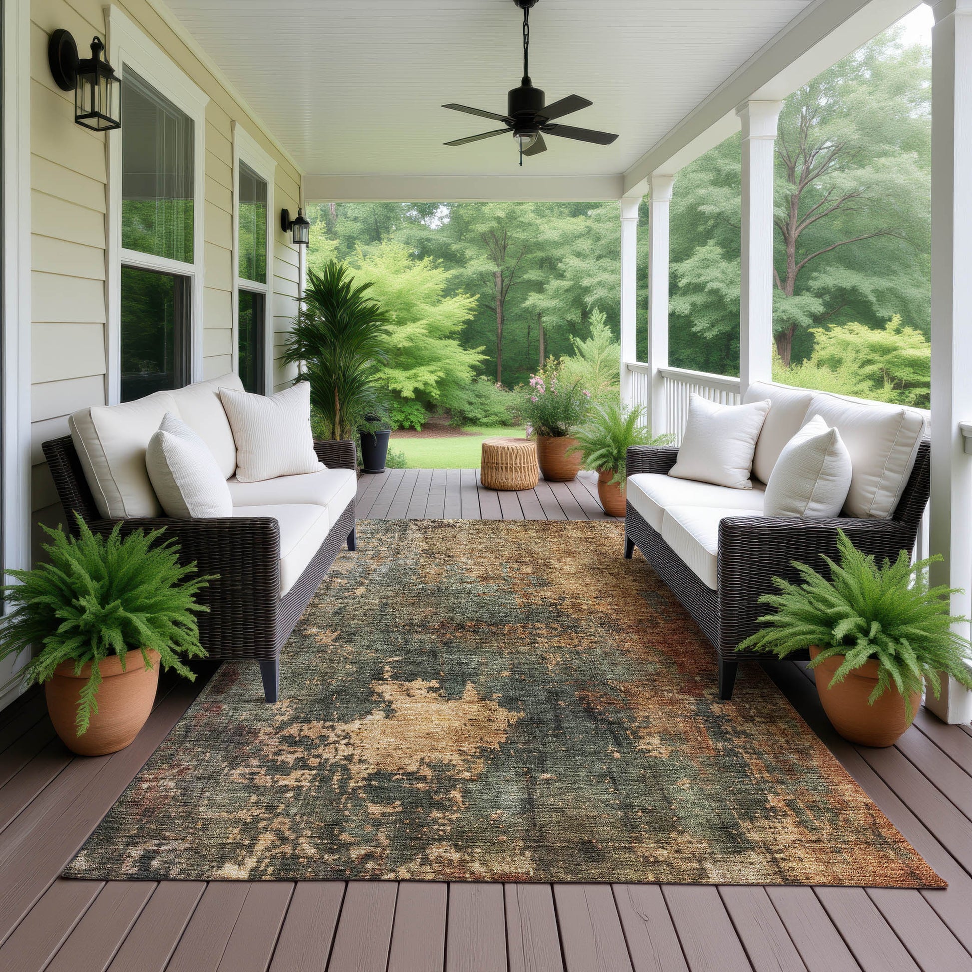 UV stabilized for indoor or outdoor use. All rugs exposed to long periods of intense and direct sunlight can experience loss of color over time. Our rugs perform best in covered outdoor areas and uncovered areas with lower hours of direct sunlight.