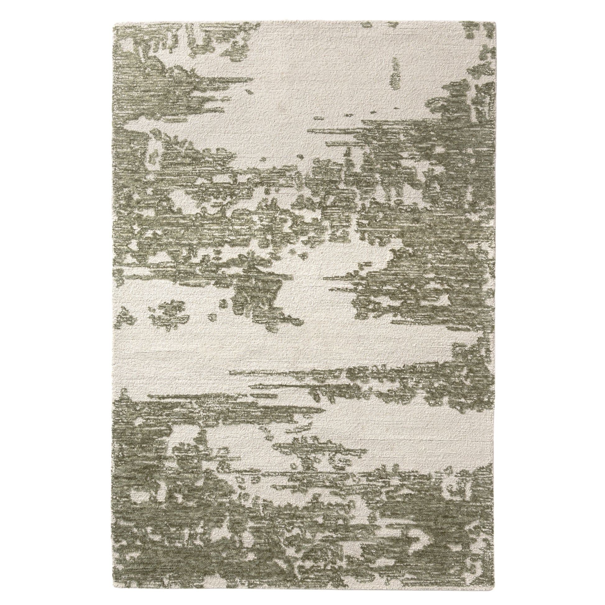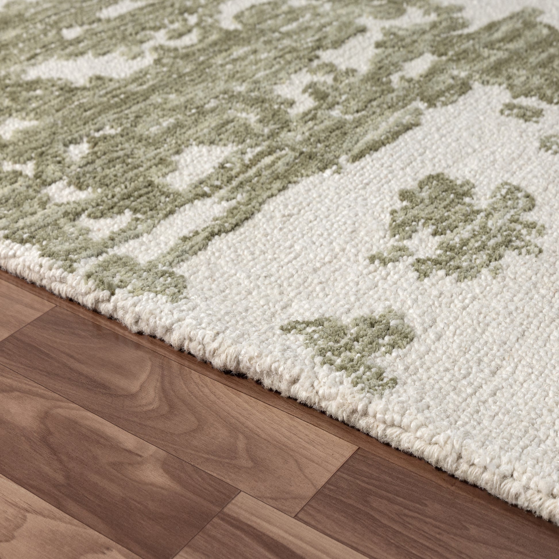 A modern abstract pattern graces this piece in soft shades of green and ivory, creating an eye-catching foundation for modern, contemporary, and transitional interiors. Each rug is handmade using traditional techniques out of 100% wool fibers with a cotton backing, creating a high-end design without sacrificing comfort or durability. The 5' x 7'9" size makes it ideal for living rooms, home offices, or bedrooms and all ages for kids and adults alike. The resilient materials and tightly woven construction ensure that this rug will maintain its shape and appearance for years to come. Perfect for anyone seeking a durable, elegant, and versatile indoor rug for your home, apartment, or dorm.