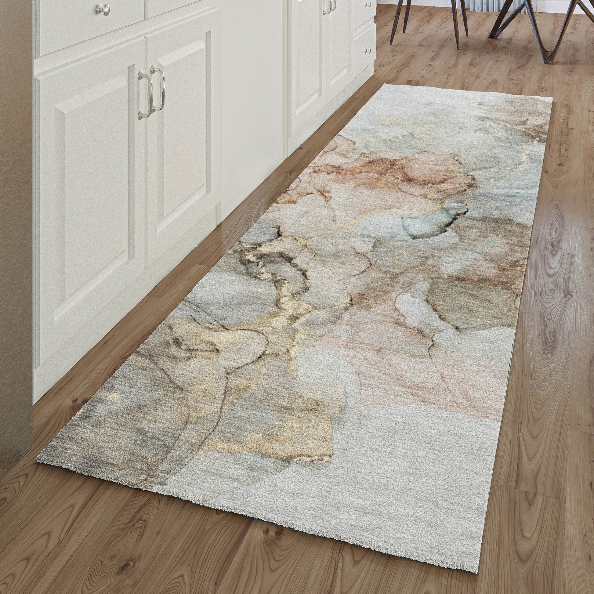 Dive into the contemporary realm with our area rug that boasts alcohol ink inspired designs. Using soft tonal colors, it exudes a distinctive modern vibe, turning your floors into canvases of art. Witness the incredibly visual color movement that dances across its surface, capturing and reflecting light in a mesmerizing manner. And beneath your feet? A luxuriously soft and plush pile made from 100% polyester microfiber, ensuring comfort as profound as its beauty.
