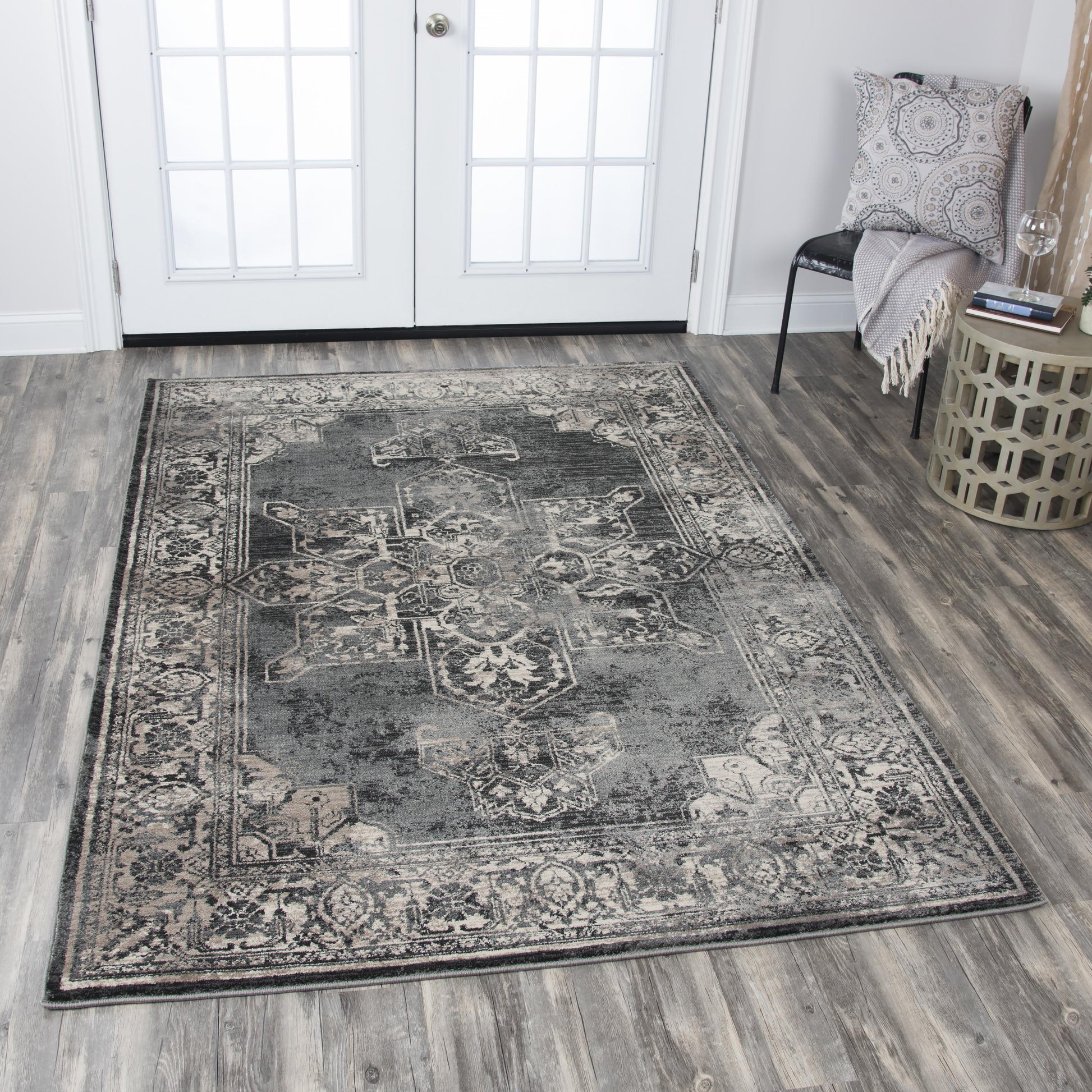 Panache PN6972 Gray/Black Power Loomed Rug - Rizzy