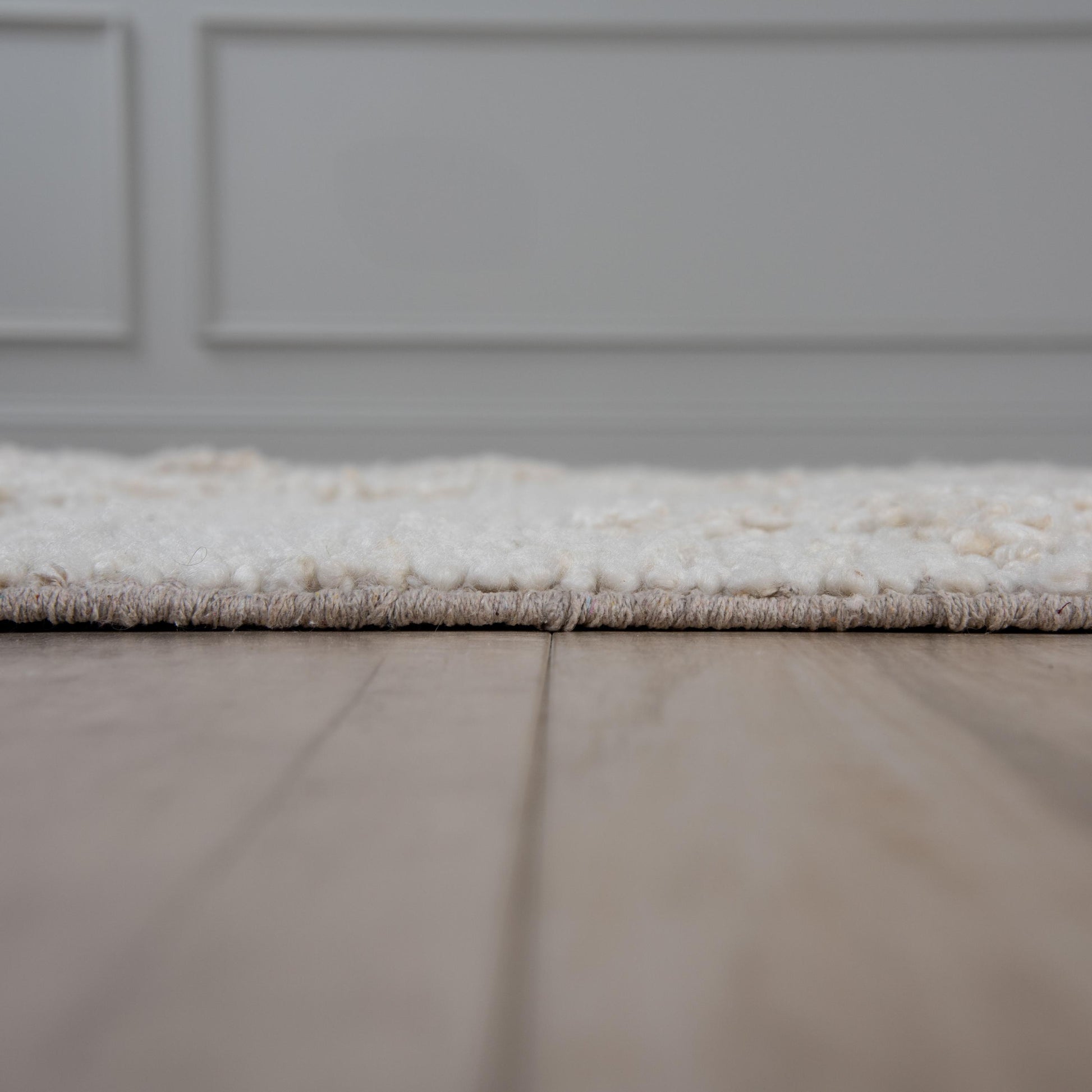 A perfect blend of modern sophistication and artisanal craftsmanship are brought together in the Park View collection by Rizzy Home. Hand-woven from the finest New Zealand hand-corded wool, this luxurious rug features a subtle geometric design in a soothing ivory tone-on-tone palette. Its refined texture and understated elegance bring warmth and style to any contemporary space or Scandinavian inspired home aesthetic. The meticulous hand-woven process ensures each piece is truly unique, offering a perfect balance of comfort, durability, and timeless appeal.