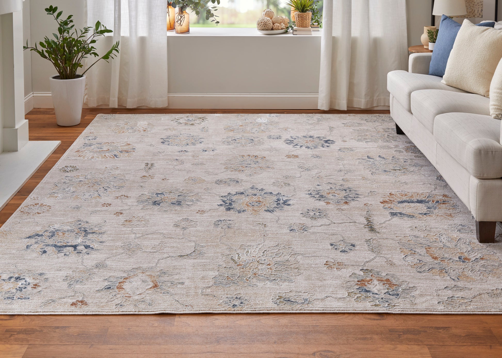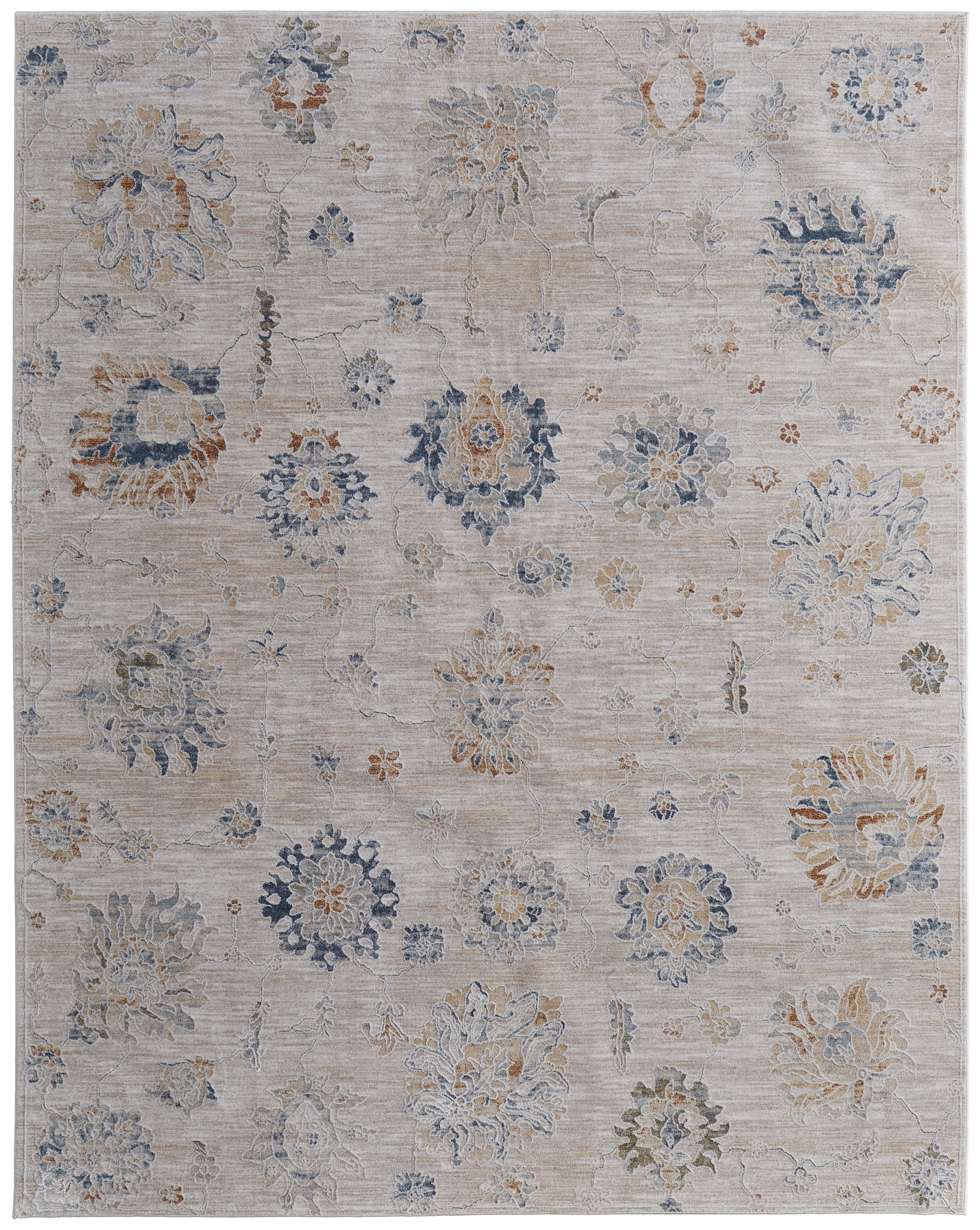 Pasha Transitional/Bohemian & Eclectic/Cottage Taupe/Ivory/Blue Area Rug