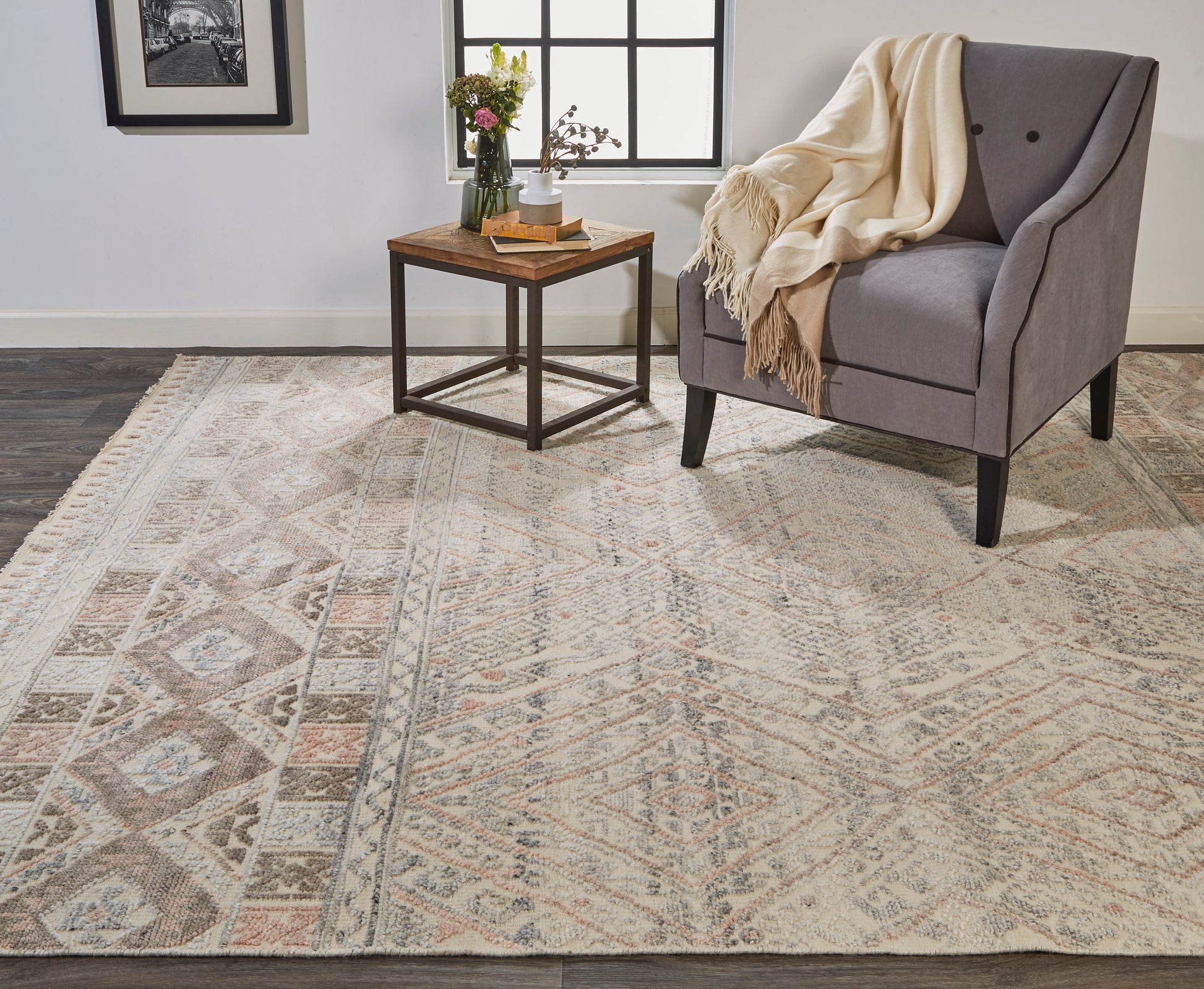 Payton Transitional/Farmhouse/Scandinavian Diamond/Trellis & Lattice Gray/Ivory/Pink - Feizy Rug