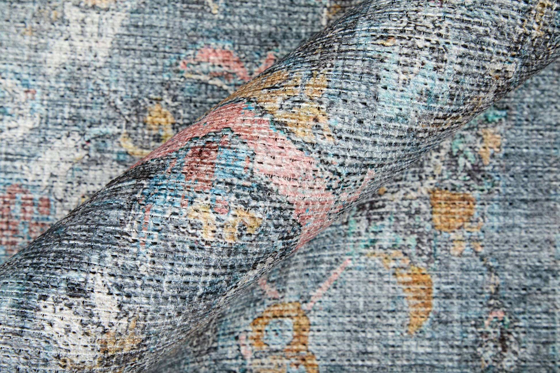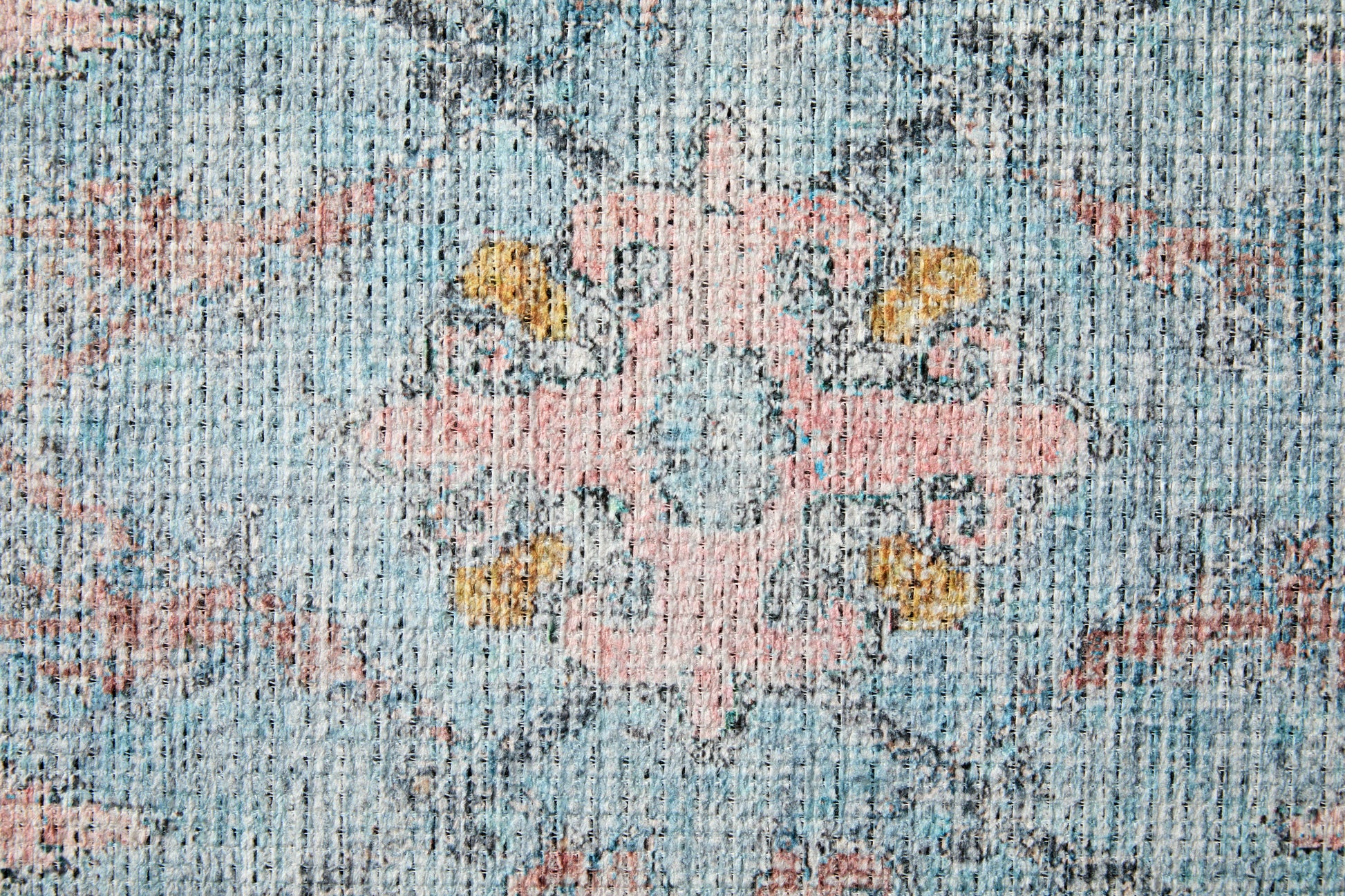 Discover the Percy Collection, where enduring craftsmanship meets effortless flair. Power-loomed in Turkey, this rug combines durable polyester and cotton in a flat pile design. Its transitional style is accentuated by a medallion motif with a subtle distressed effect, rendered in a palette of blue, gray, taupe, red, orange, and ivory. Uniquely machine washable, this area rug promises easy care, seamlessly integrating into your daily routine and enhancing your space with its timeless charm