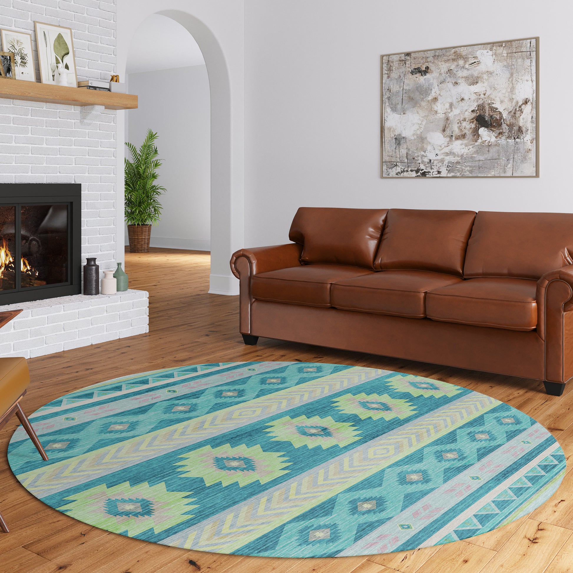 Phoenix collection has great casual southwestern lodge feel. Featuring an ultra-soft and ultra thin pile, each rug is made with 100% polyester pile complete with a non-skid backing. Final crafting in USA using domestic processing on an imported substrate. They are UV Stabilized for indoor and outdoor spaces. Machine washable in cold water and air dry, some sizes may be too large for a residential washing machine and is family and pet friendly.