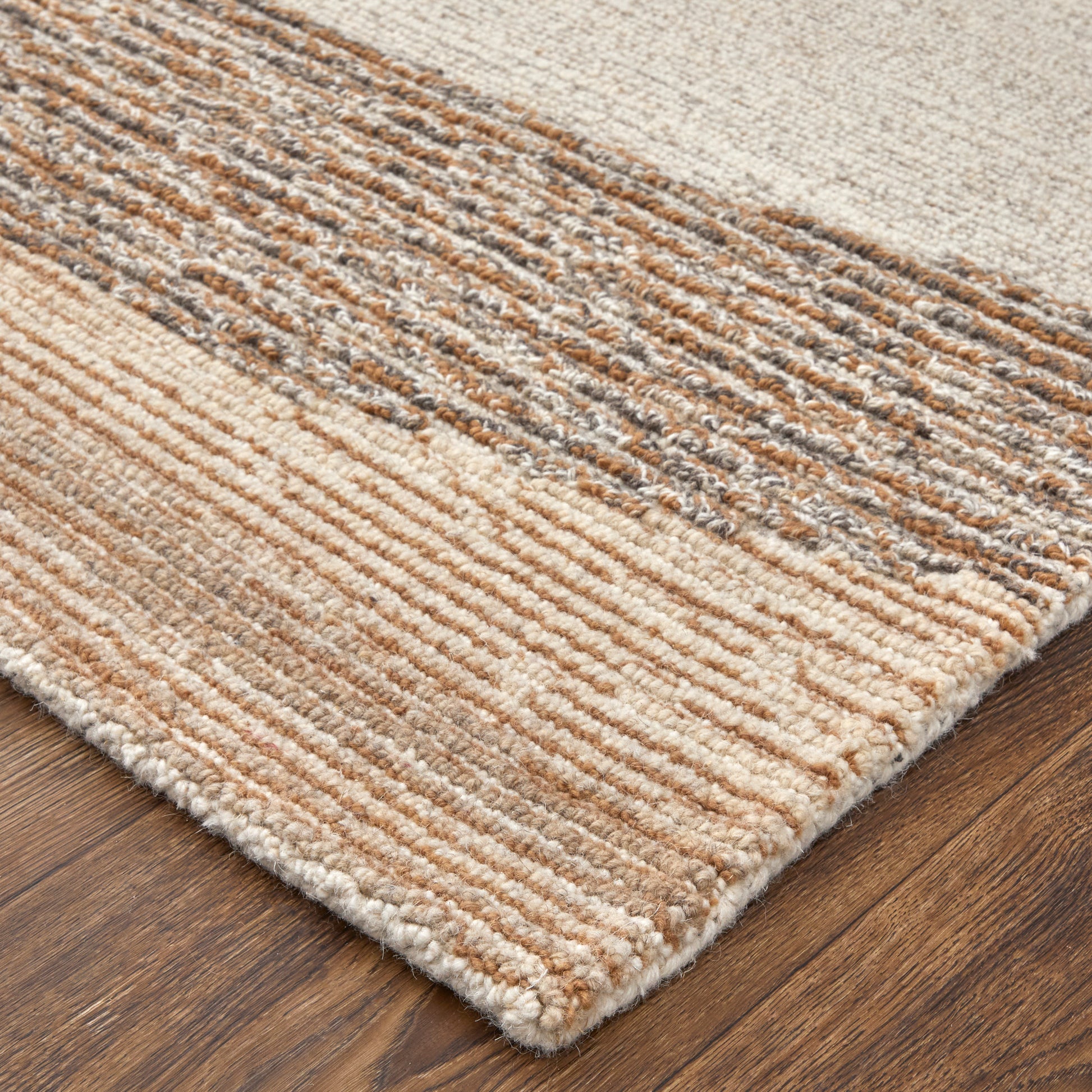 The Feizy Pollock collection is hand tufted in India of wool and nylon. This collection is designed with a contemporary geometric pattern in ivory and various tans. The area rug is ideal for high-traffic areas of your home. Naturally stain and water resistant, this collection is perfect for a home with pets and kids.