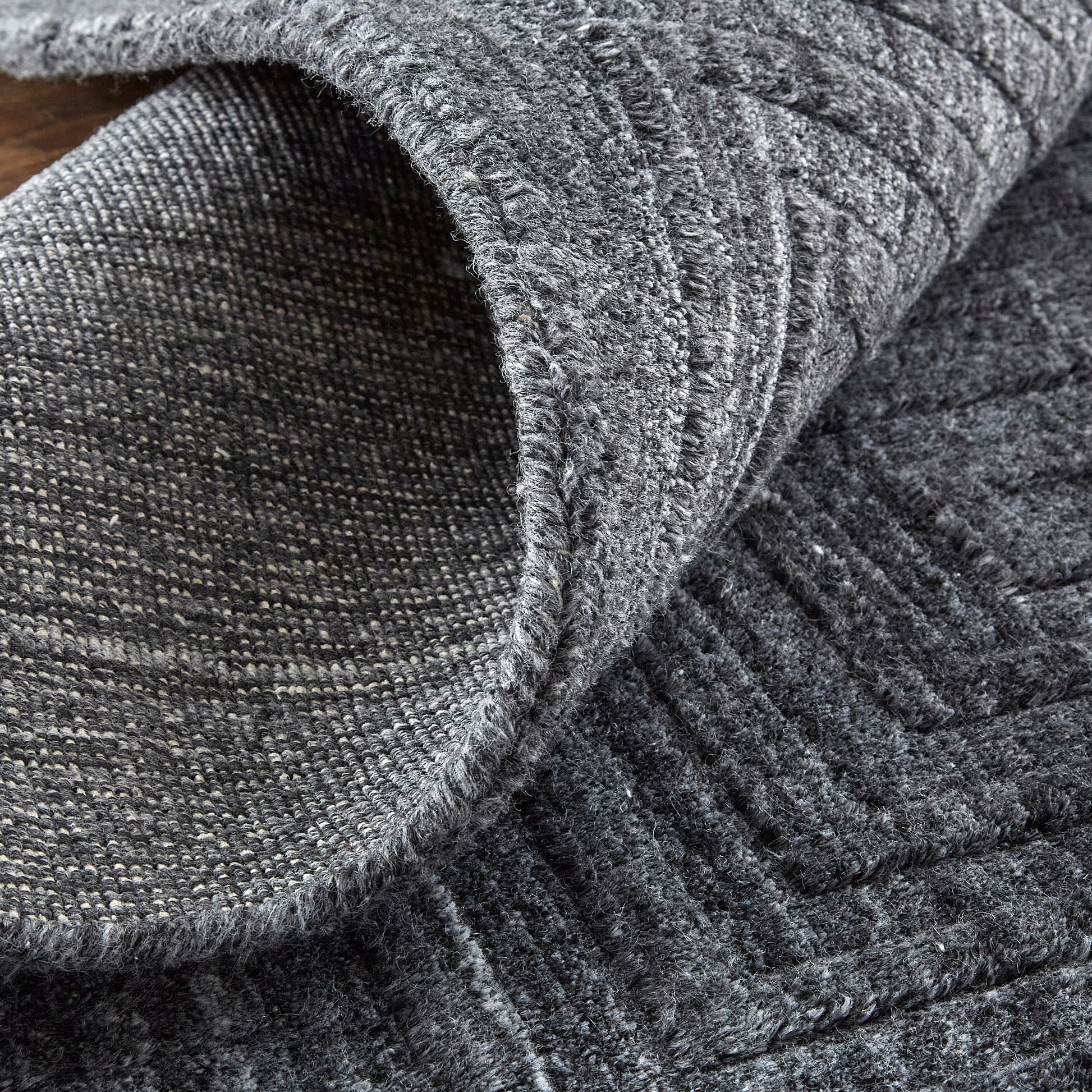 The Redford Collection is a rhythmically geometric aesthetic featuring distressed linear designs that intersect with a carved pile. Each high-low textured piece features neutral shades of white, gray, beige and charcoal to unify any living space. The viscose and wool Redford Collection is handwoven in India by skilled artisans