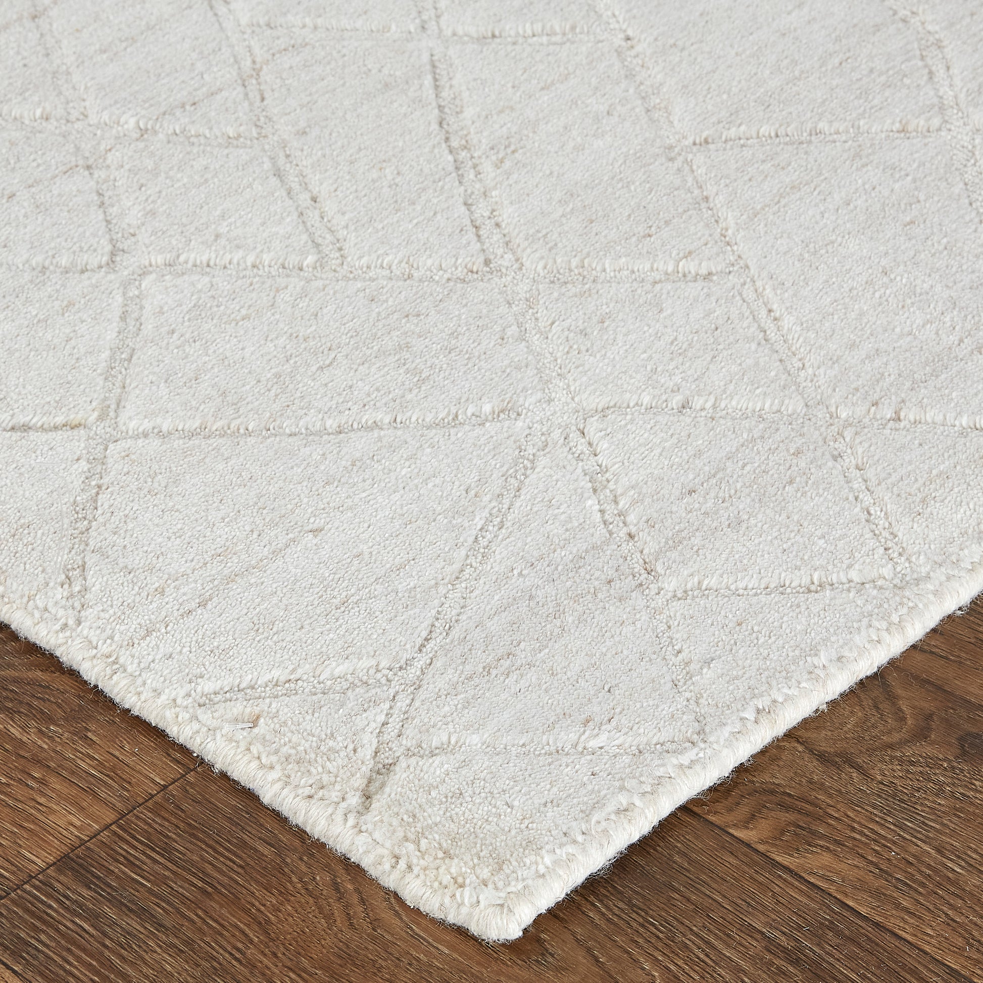The Redford Collection is a rhythmically geometric aesthetic featuring distressed linear designs that intersect with a carved pile. Each high-low textured piece features neutral shades of white, gray, beige and charcoal to unify any living space. The viscose and wool Redford Collection is handwoven in India by skilled artisans