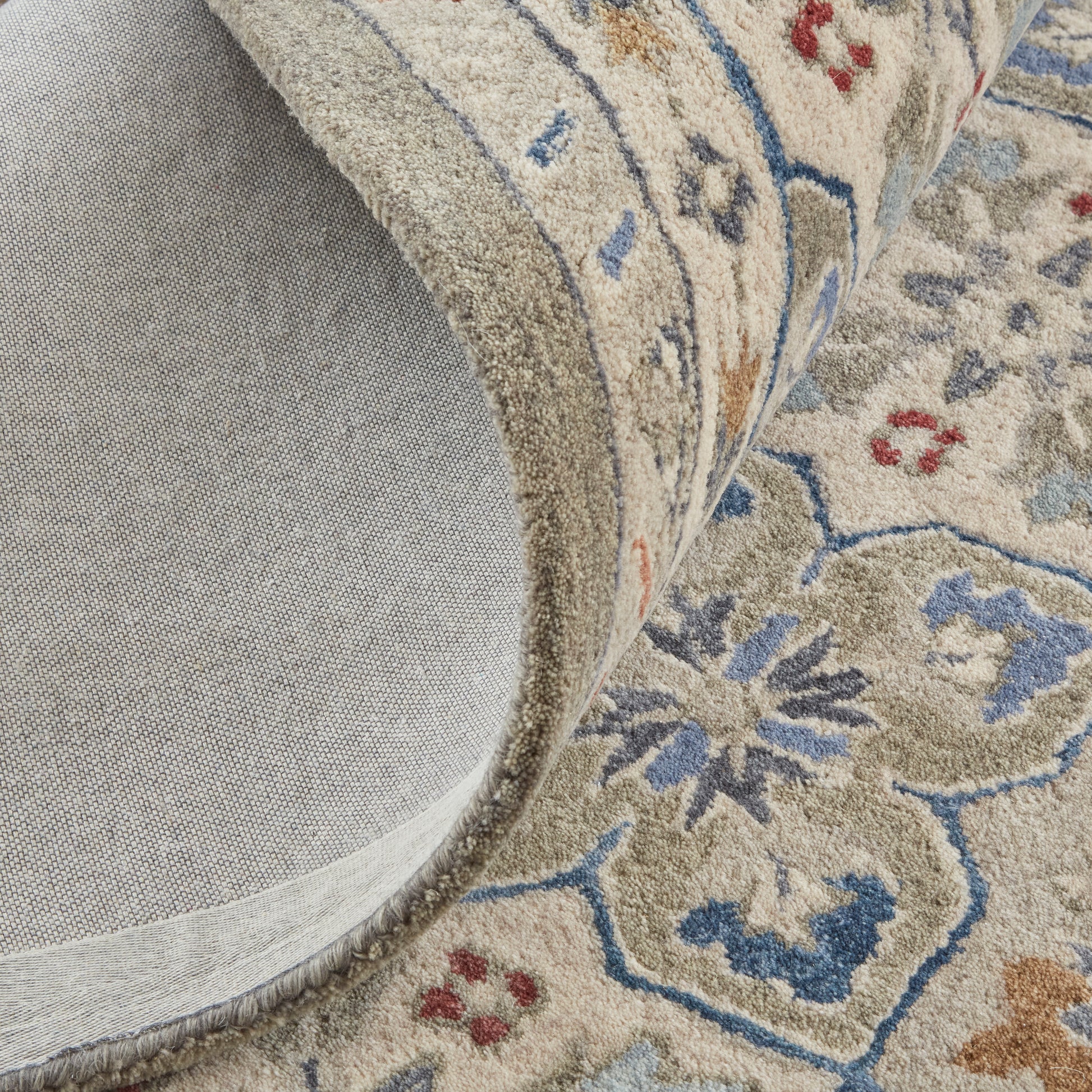 Experience the illustrious pomp and circumstance of the all - wool hand - tufted Rylan Collection. Each piece boasts brilliantly cheeky floral designs as they mingle amidst meandering vines. The trend - forward parade of cool hues feature blue, brown and gray tones with subtle hints of warm reds that create a thoughtfully crafted transitional statement piece.