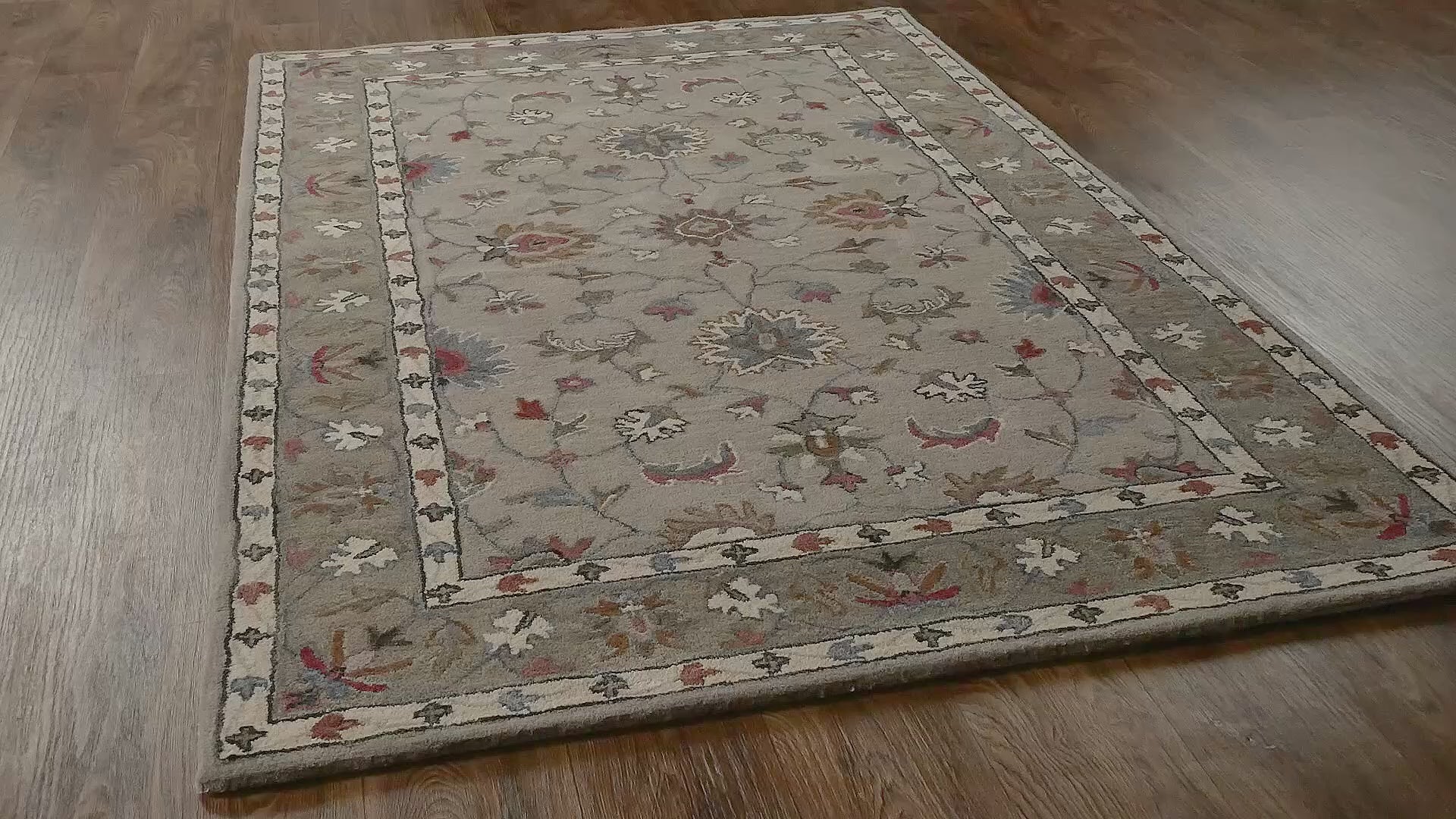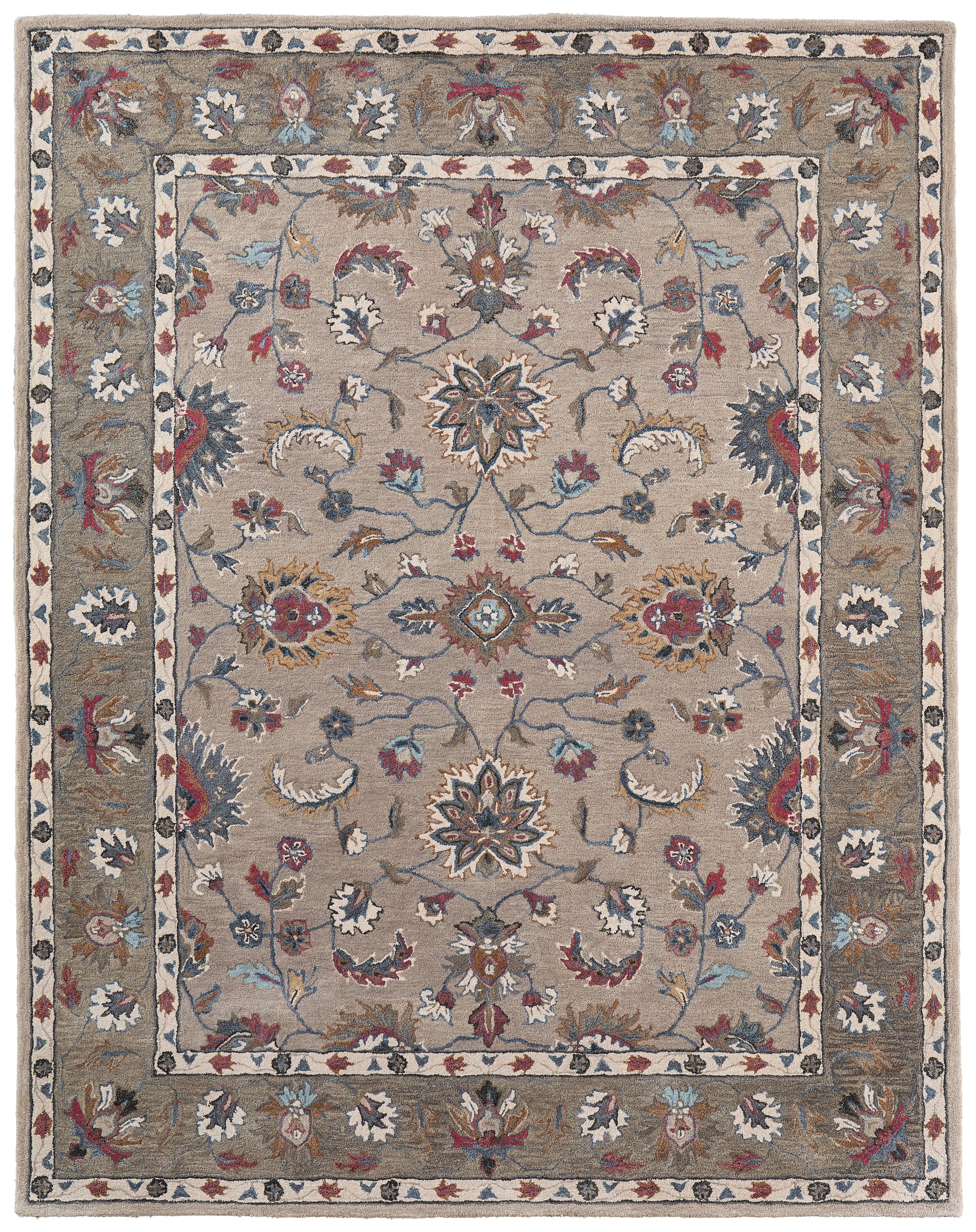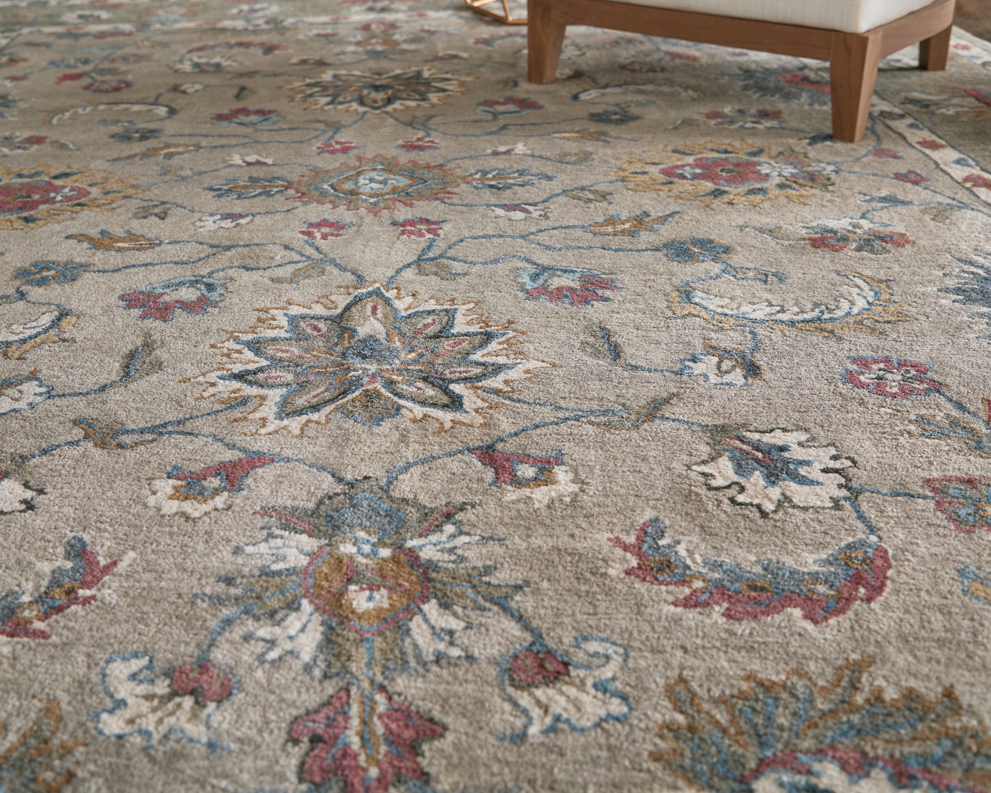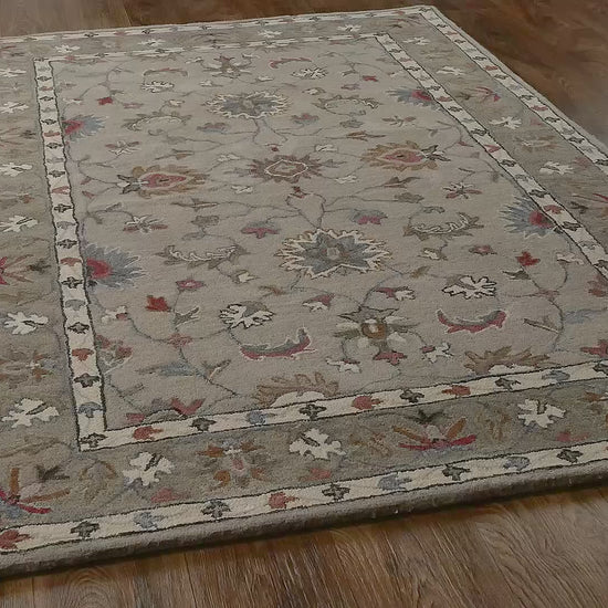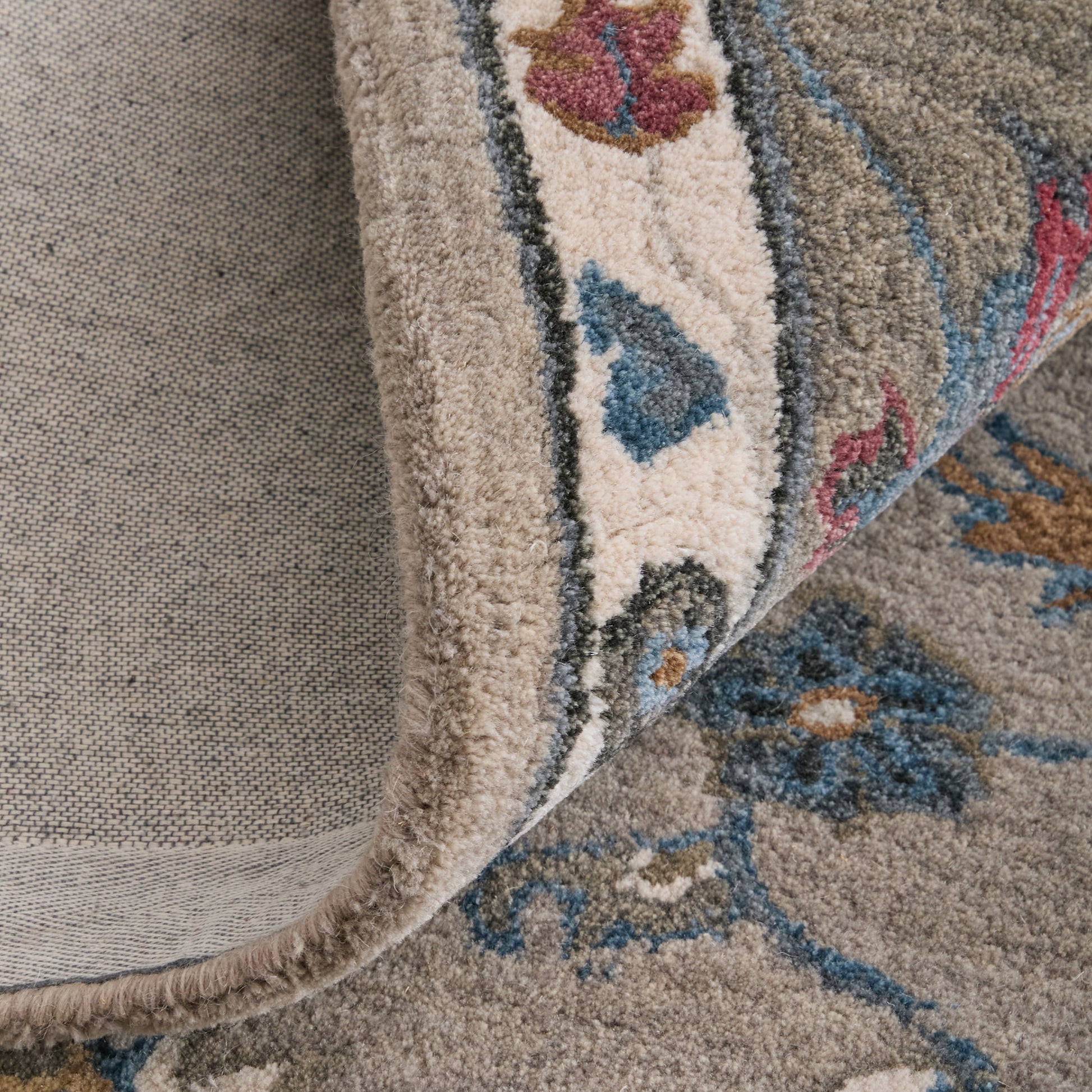 Experience the illustrious pomp and circumstance of the all - wool hand - tufted Rylan Collection. Each piece boasts brilliantly cheeky floral designs as they mingle amidst meandering vines. The trend - forward parade of cool hues feature blue, brown and gray tones with subtle hints of warm reds that create a thoughtfully crafted transitional statement piece.