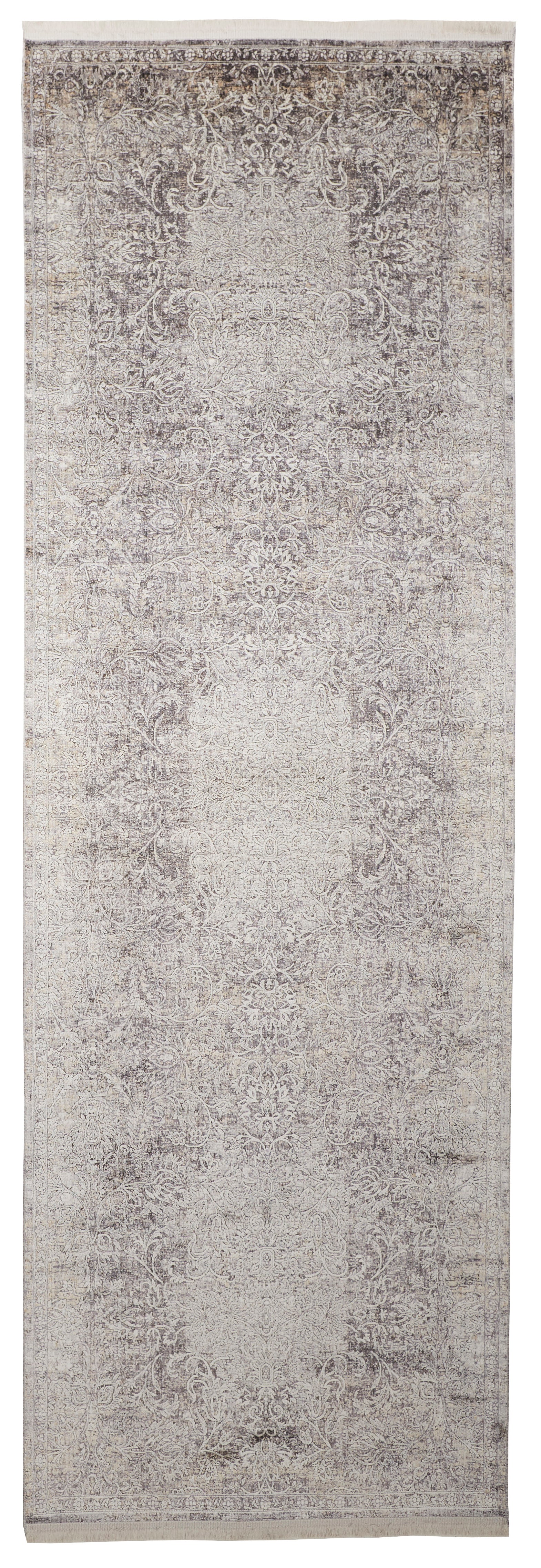 The Feizy Sarrant collection is machine made in a luminous viscose and polyester blend showcase traditional medallion motifs. The ultra-dense machine woven piles give these pieces added durability with a soft touch. Power loomed in Turkey of luminous space-dyed viscose these decadent pieces feature color gradients of charcoal and ivory and are accented with delicate notes of soothing blues and warm yellows.