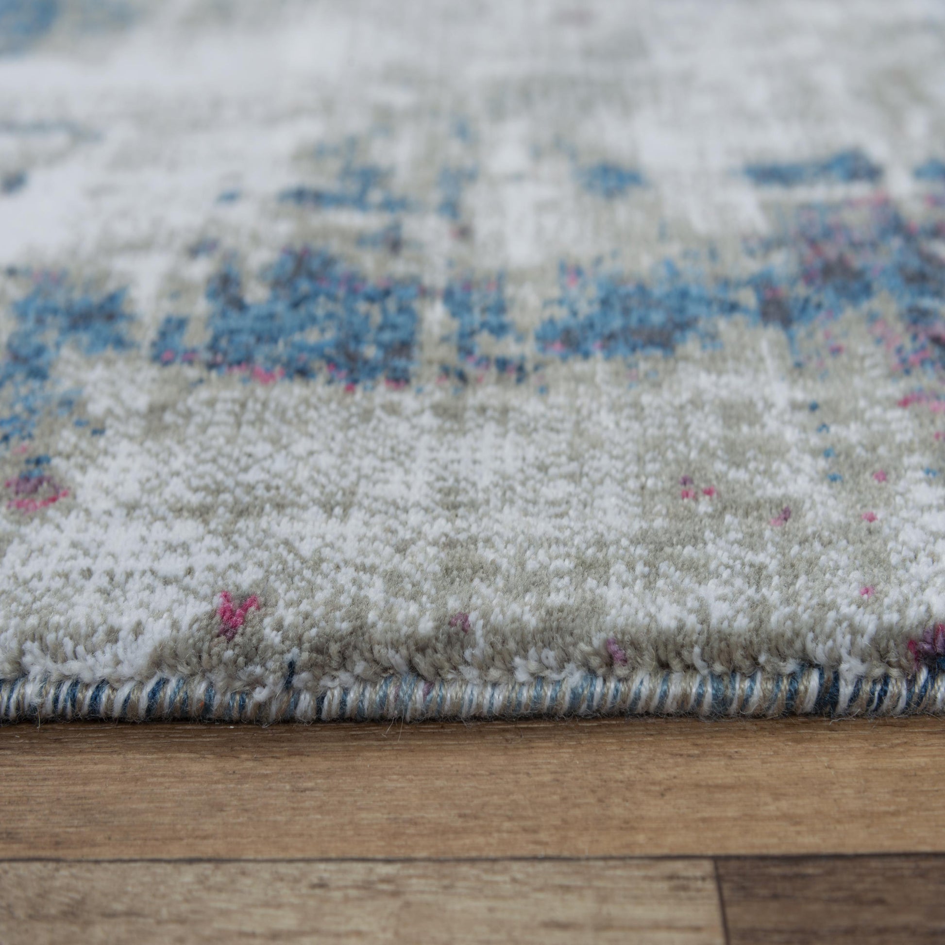 Grand swatches of blue, gold, pink, purple, apricot, and burgundy adorn the ivory and grey patches of this Rizzy Home Signature Abstract Rug. Brighten up your modern or transitional home or office décor with fibers made of 100-percent recycled polyester, power-loomed for uniform and durable construction. Bound on all edges for a clean and precise look.