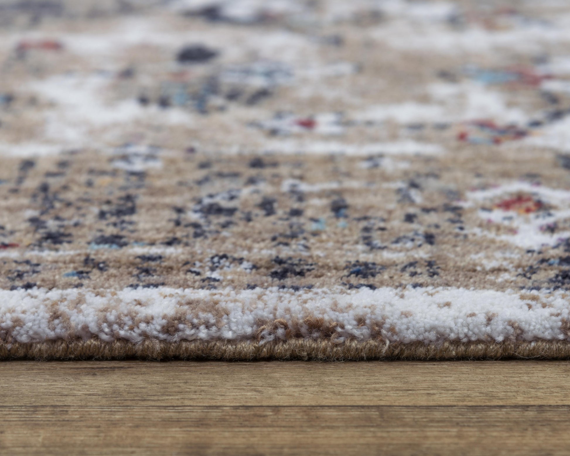 Let your mind fill in the patterns of this Rizzy Home Signature Vintage Rug. Patterns of beautiful give way to the wear and tear of years of use, however dark charcoal, blue, burgundy wine, and gold still peek out in the neutral field of ivory, beige. Ideal for your traditional or vintage home or office décor. Durable and quality power-loomed 100-percent recycled polyester construction will make this rug have lasting beauty for years.
