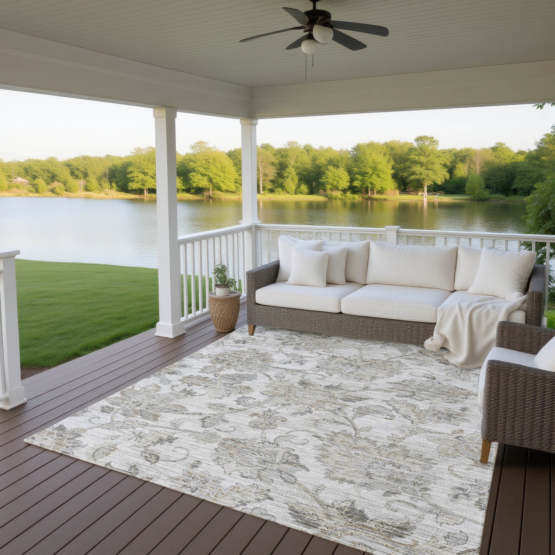 UV stabilized for indoor or outdoor use. All rugs exposed to long periods of intense and direct sunlight can experience loss of color over time. Our rugs perform best in covered outdoor areas and uncovered areas with lower hours of direct sunlight.