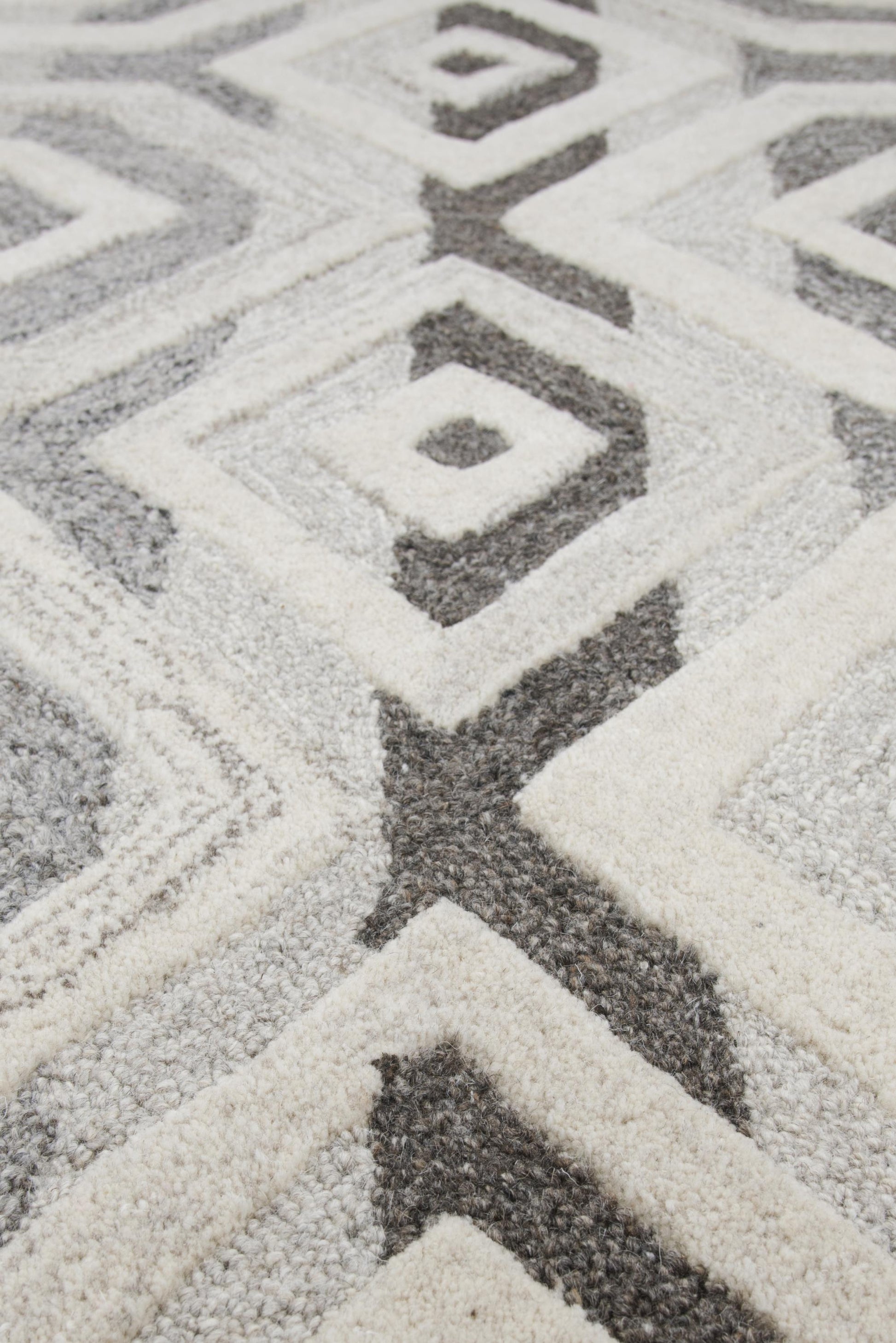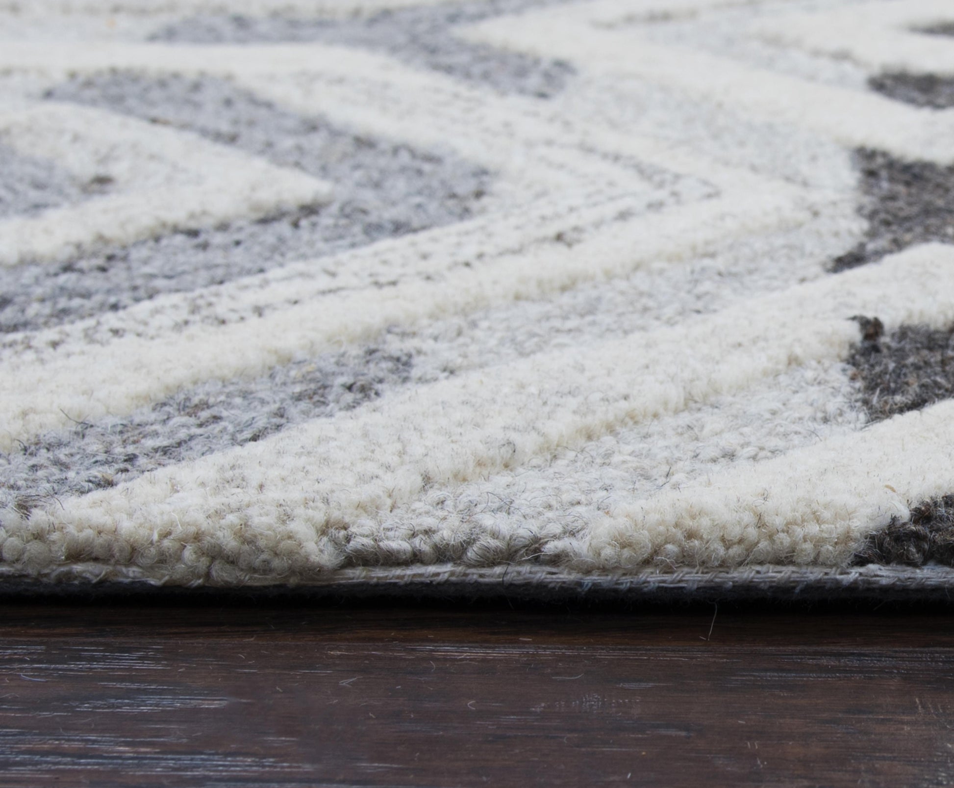 Convey your exceptional taste and good judgement by choosing the Rizzy Home Suffolk Grey and Natural Hand-tufted Hand-surged Geometric Rug. This gracious addition to your home is friendly to the environment as well as splendid to see and touch. Hand-tufted in dense high and low pile from un-dyed, natural-colored, chemical-free wool. The solid geometrical design in select grey and natural colors has hand-surged edges for the perfect finish to the transitional, modern style of this outstanding artwork.