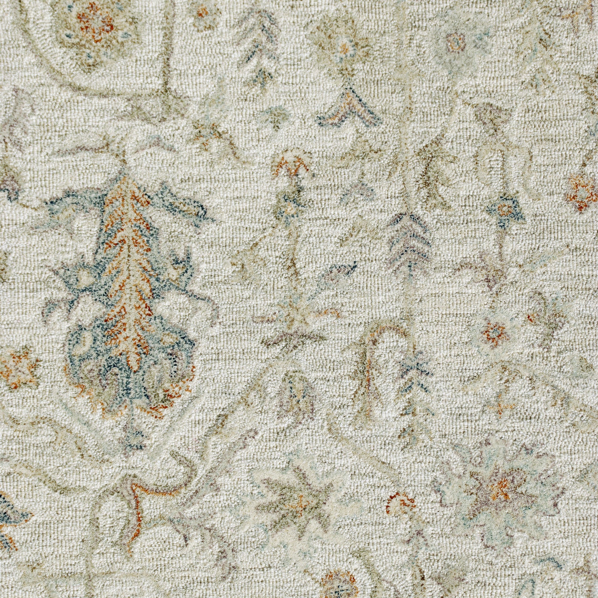 Elements of abstract garden motifs and distressed floral design meld together to create this timeless traditional area rug. This wool rug features a modest array of neutral colors in shades of cream and taupe with hints of blue, green, and orange. Made for the home with high-traffic spaces, this hand tufted area rug highlights the extravagant look and feel of a vintage wool rug plus with a durable lifespan and affordable price point.