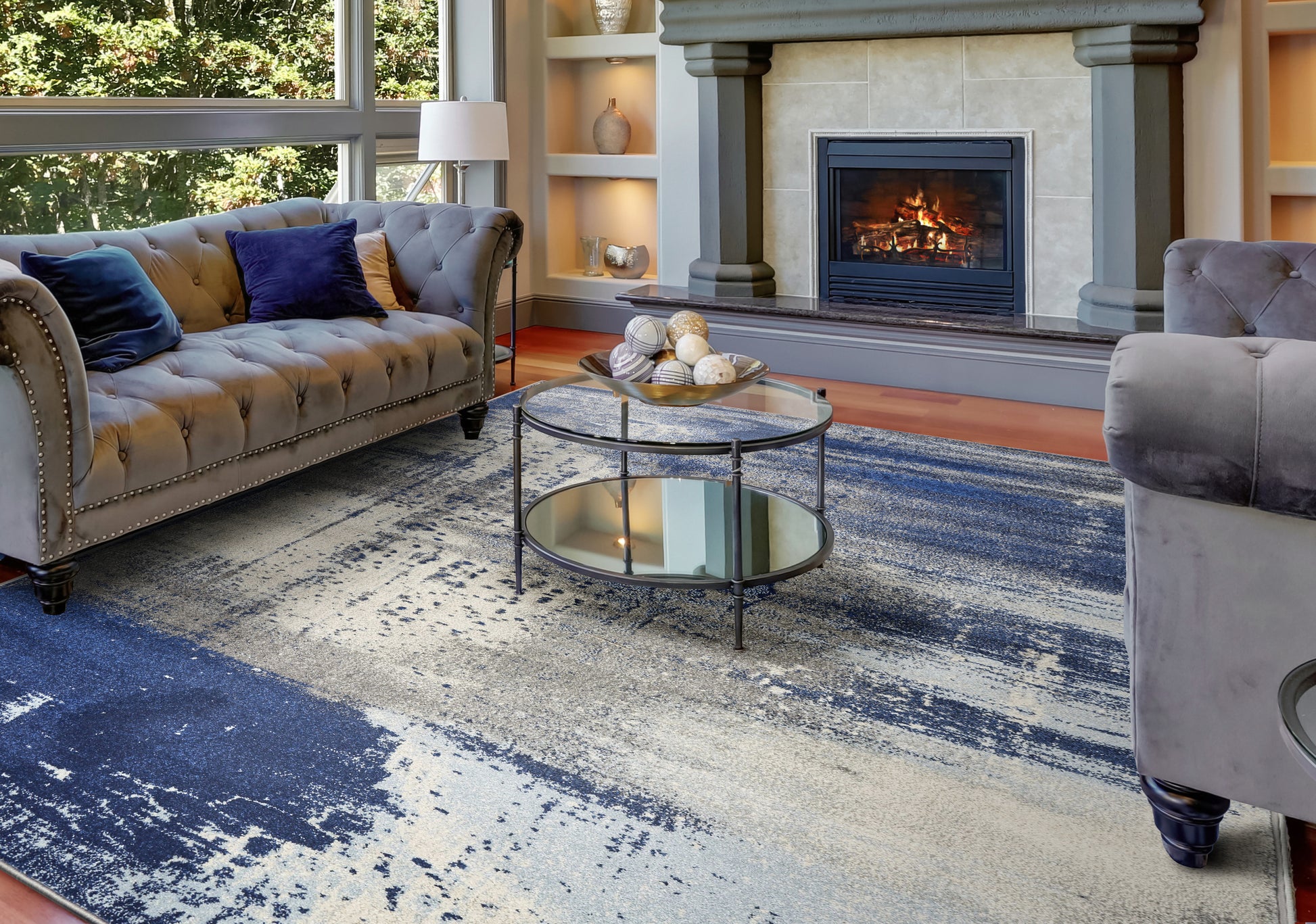 Watercolors 6230 Ice Blue Flow Machine Woven Performance Area Rug - KAS