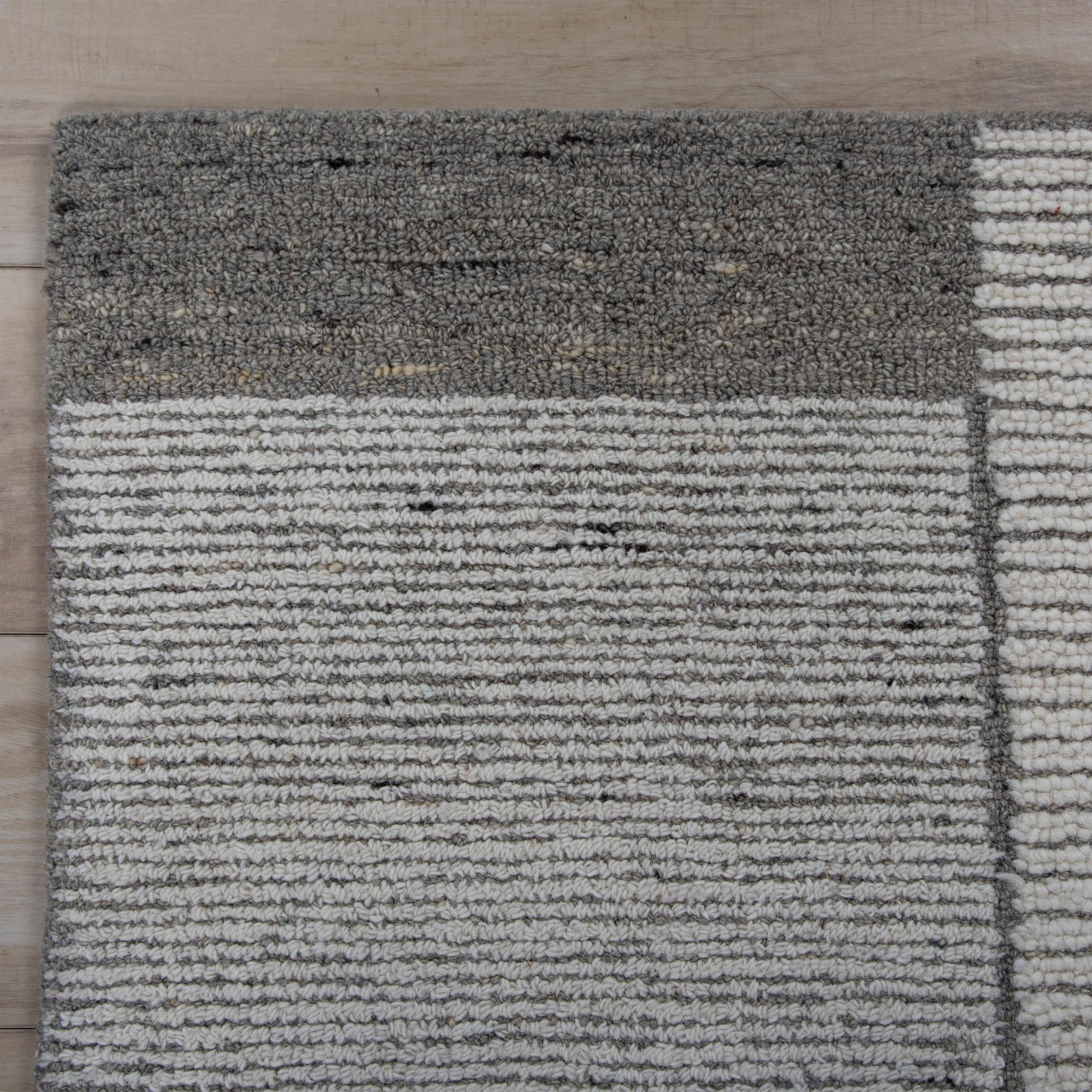 Add a pop of modern play with this rug from the Willow collection by Rizzy Home—a sleek, contemporary piece that brings bold style to your space. Hand-tufted from a soft blend of wool, this rug features pot-dyed yarns that create a rich, variegated brushstroke effect—adding depth and dimension to its bold, geometric color block design. A cool gray base is complemented by ivory, beige, and charcoal accents, giving the pattern a refined and balanced presence. Fully finished by hand, including hand-serged edges, Willow is a timeless blend of comfort, character, and artisanal craftsmanship.