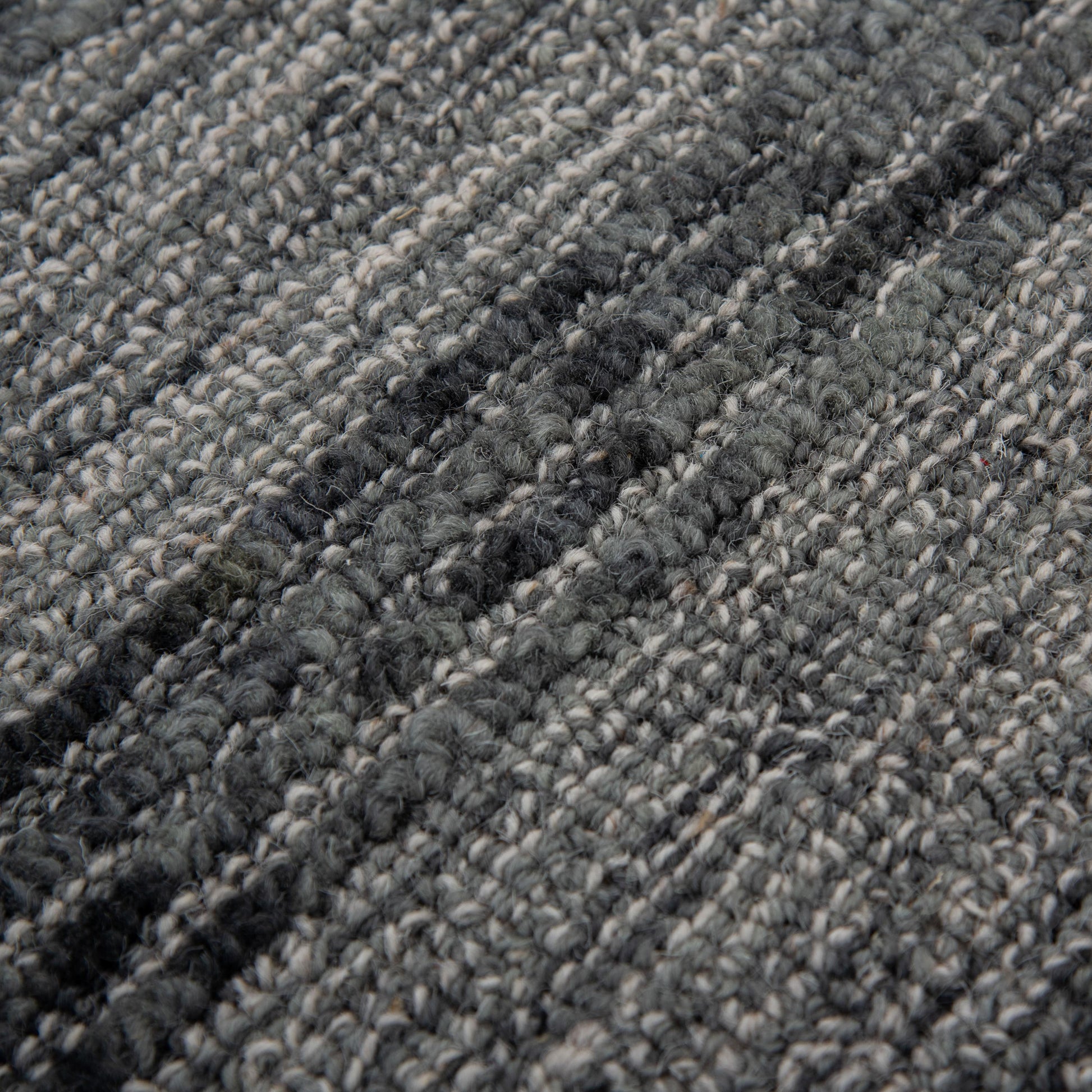 Blending contemporary design with modern industrial influence, this rug from the Willow collection by Rizzy Home brings edgy charm to any space. Hand-tufted from a soft blend of wool, this rug features pot-dyed yarns that create a rich, variegated brushstroke effect—adding depth and dimension to its striped design. The charcoal base is complemented by black and gray accents, giving the design a refined, bold presence. Fully finished by hand, including hand-serged edges, Willow is a timeless blend of comfort, character, and artisanal craftsmanship.