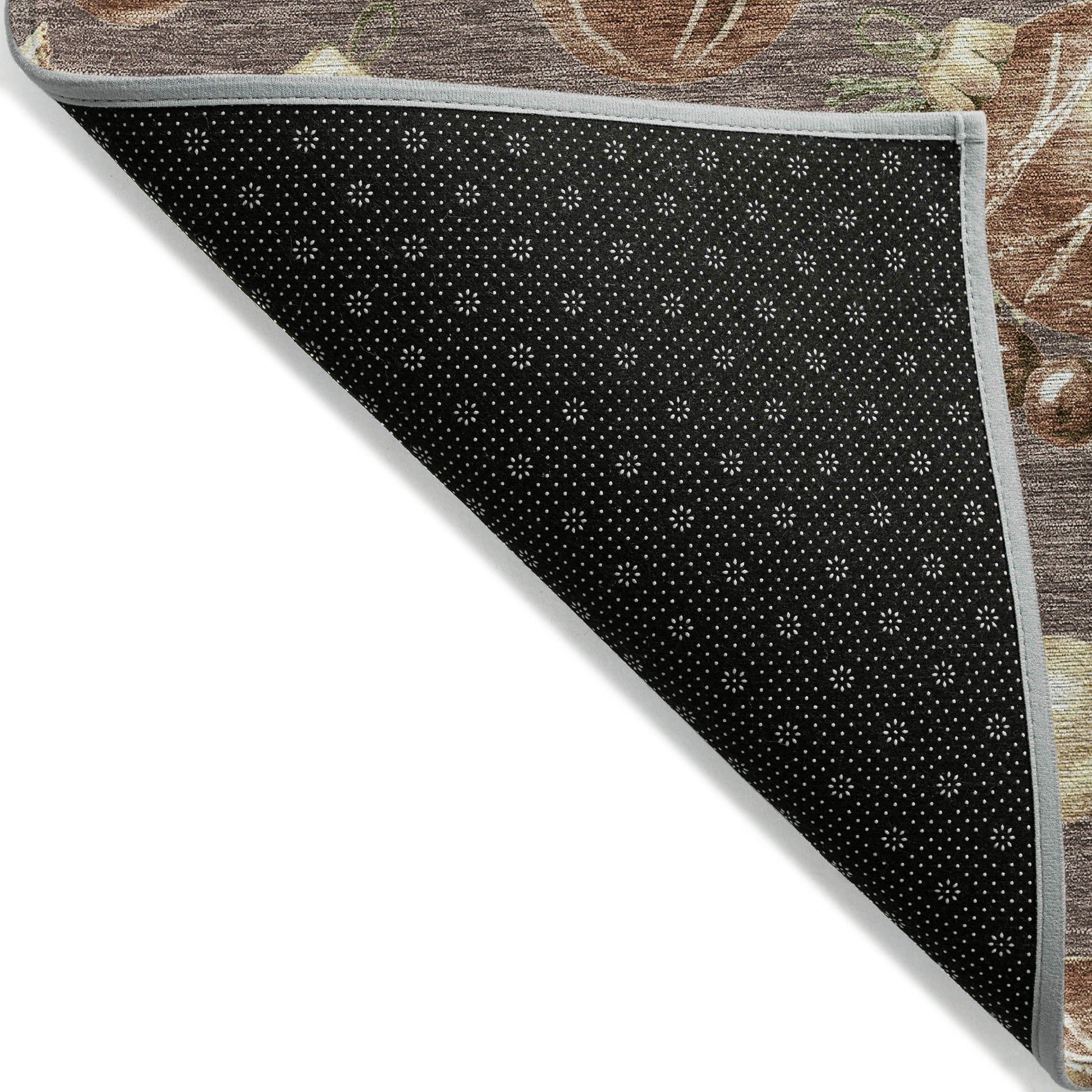 Ultra thin polyester flat woven construction with an incorporated non-skid backing. A separate rug pad may be used for added cushion and support.